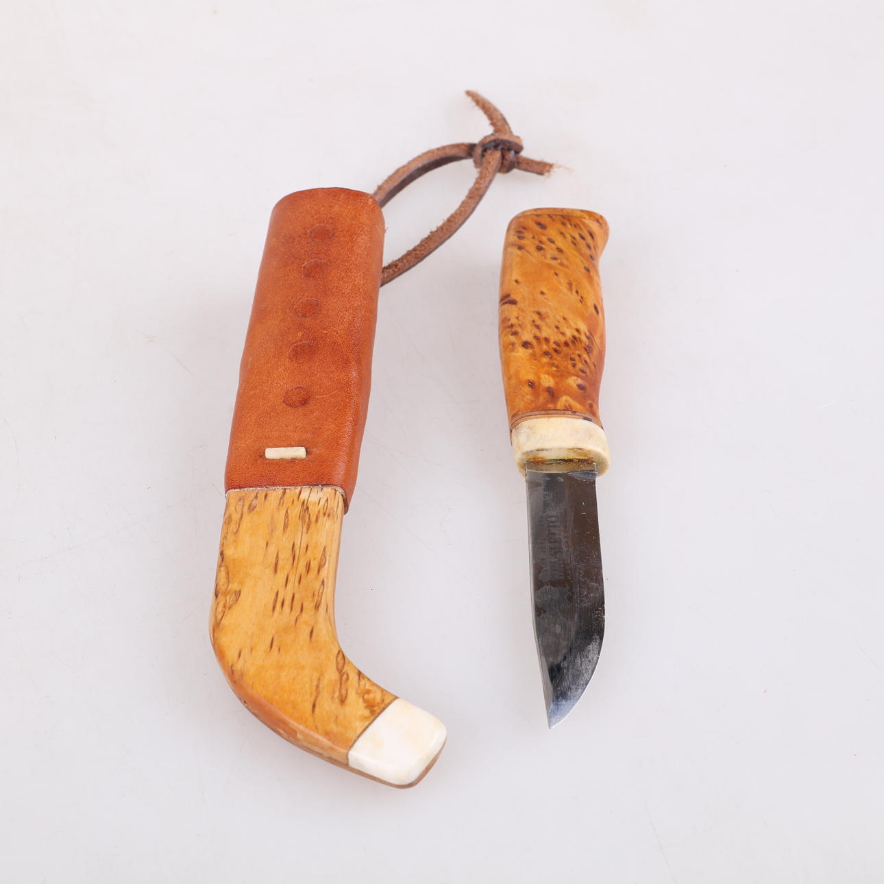 Total length approx. 18 cm Blade length approx. 8 cm Length incl. sheath approx. 23 cm Bone and Masurbirk in the shaft.