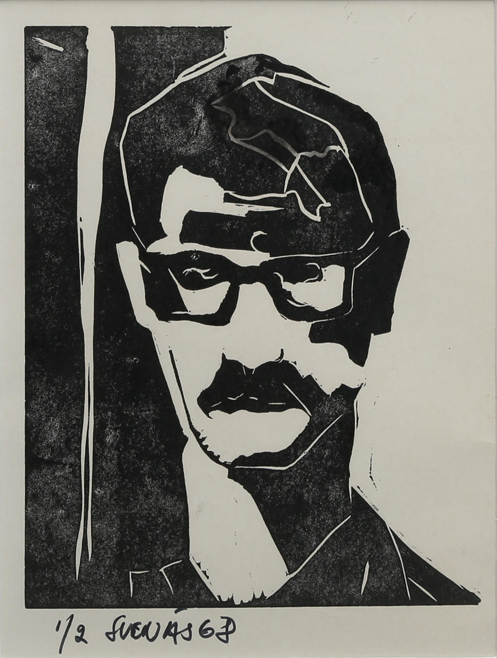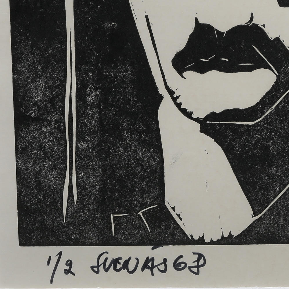Signed and dated 68, numbered 1/2, linoleum cut, image area approx. 23x18 cm.