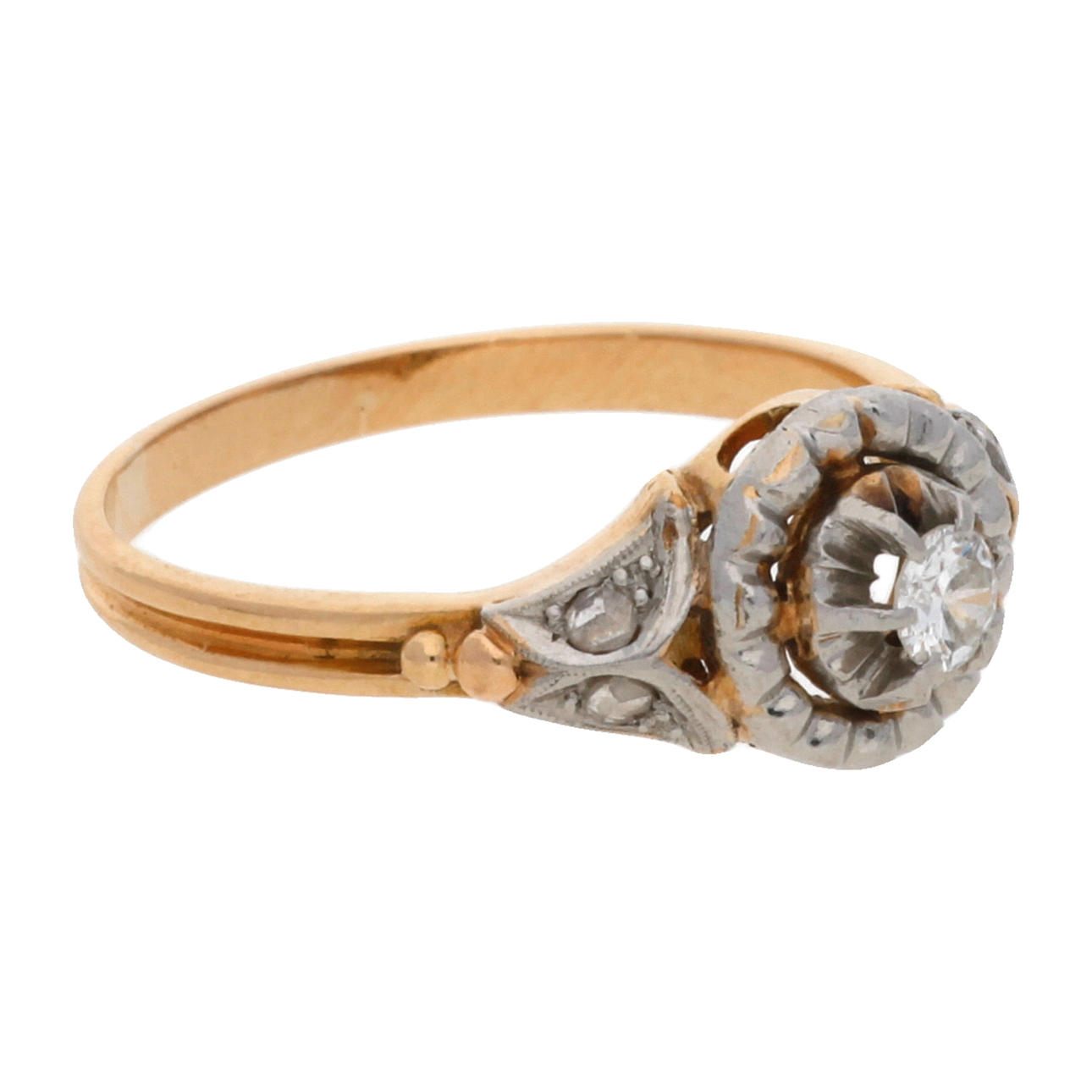 18K gold with platinum views, brilliant and rose cut diamonds, 0.20 cts. Size 19/59. 3.9 gr.
