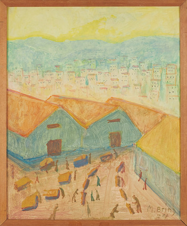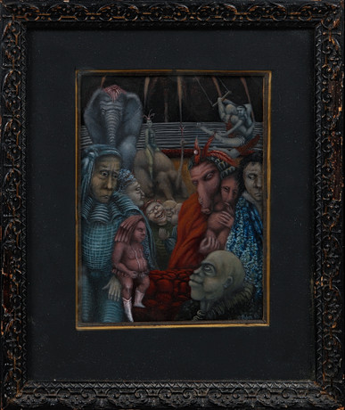 Minor mark/hole right side at the top, edge damage. Missing frame.