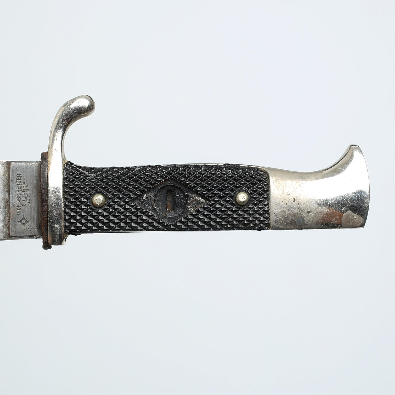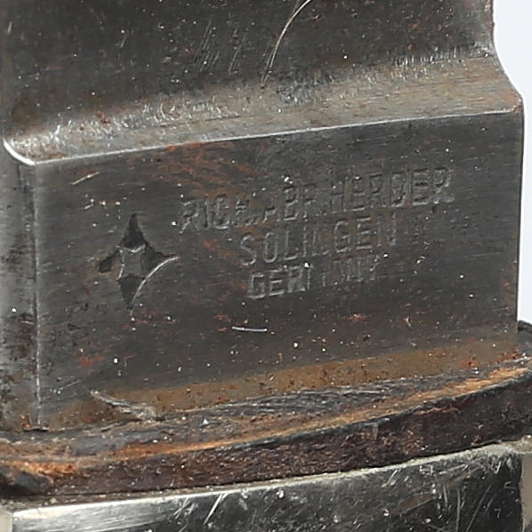 Plaque missing on grip. Wear, corrosion in places.