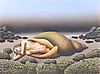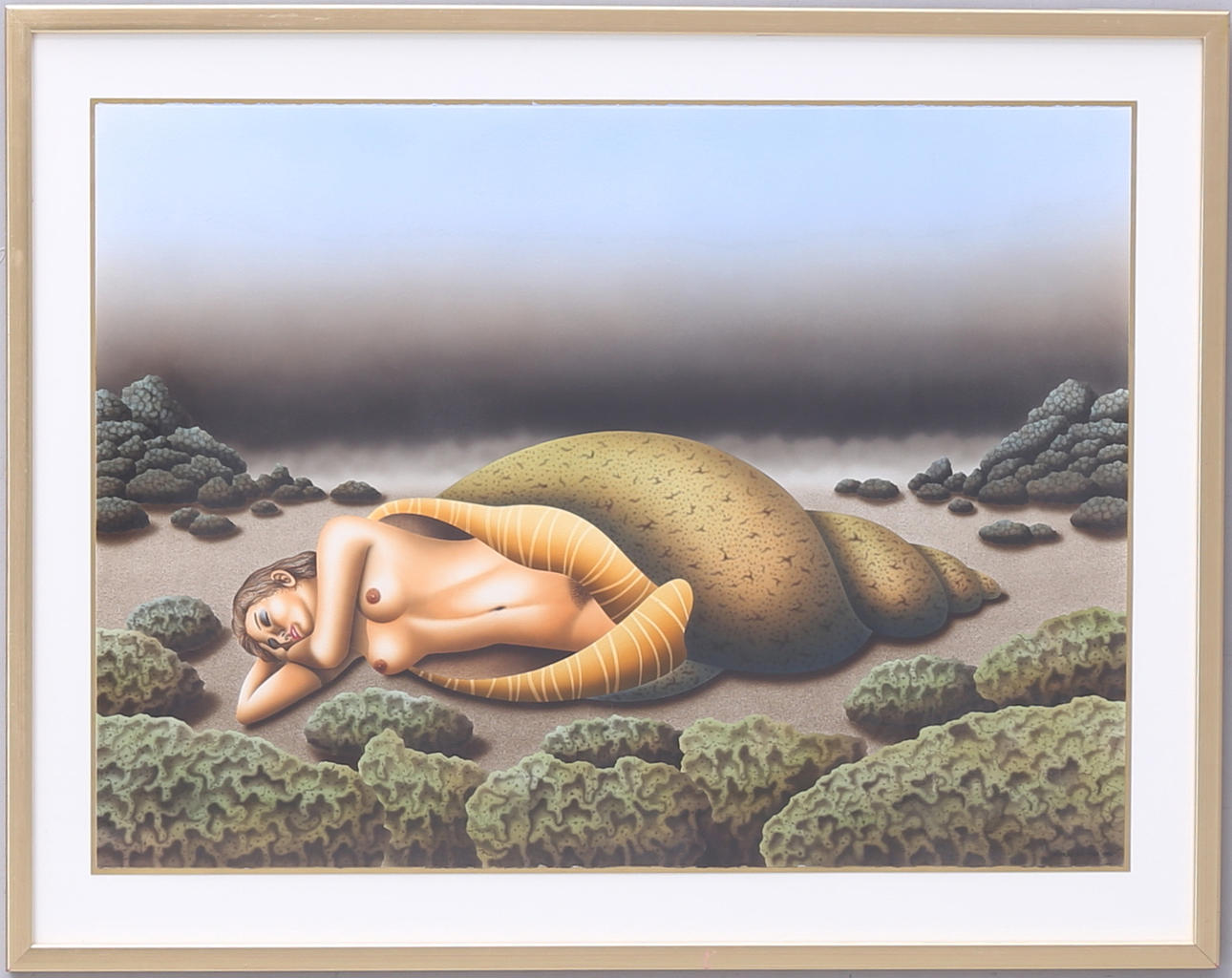 1104812. ANDERS SOLFORS. Woman in a shell, mixed media, signed, dated 1985.