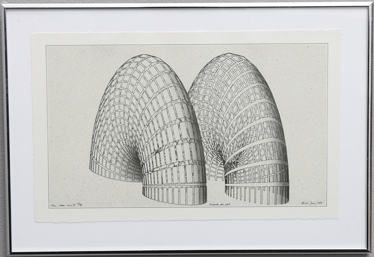 "Mini moon arch IV" signed and dated 1984, numbered 14/20, image area 18x30.5 cmm respectively "Mini DD standing", signed and dated 1985, numbered 126/200, image area approx. 23x31 cm, numbered 126/200.