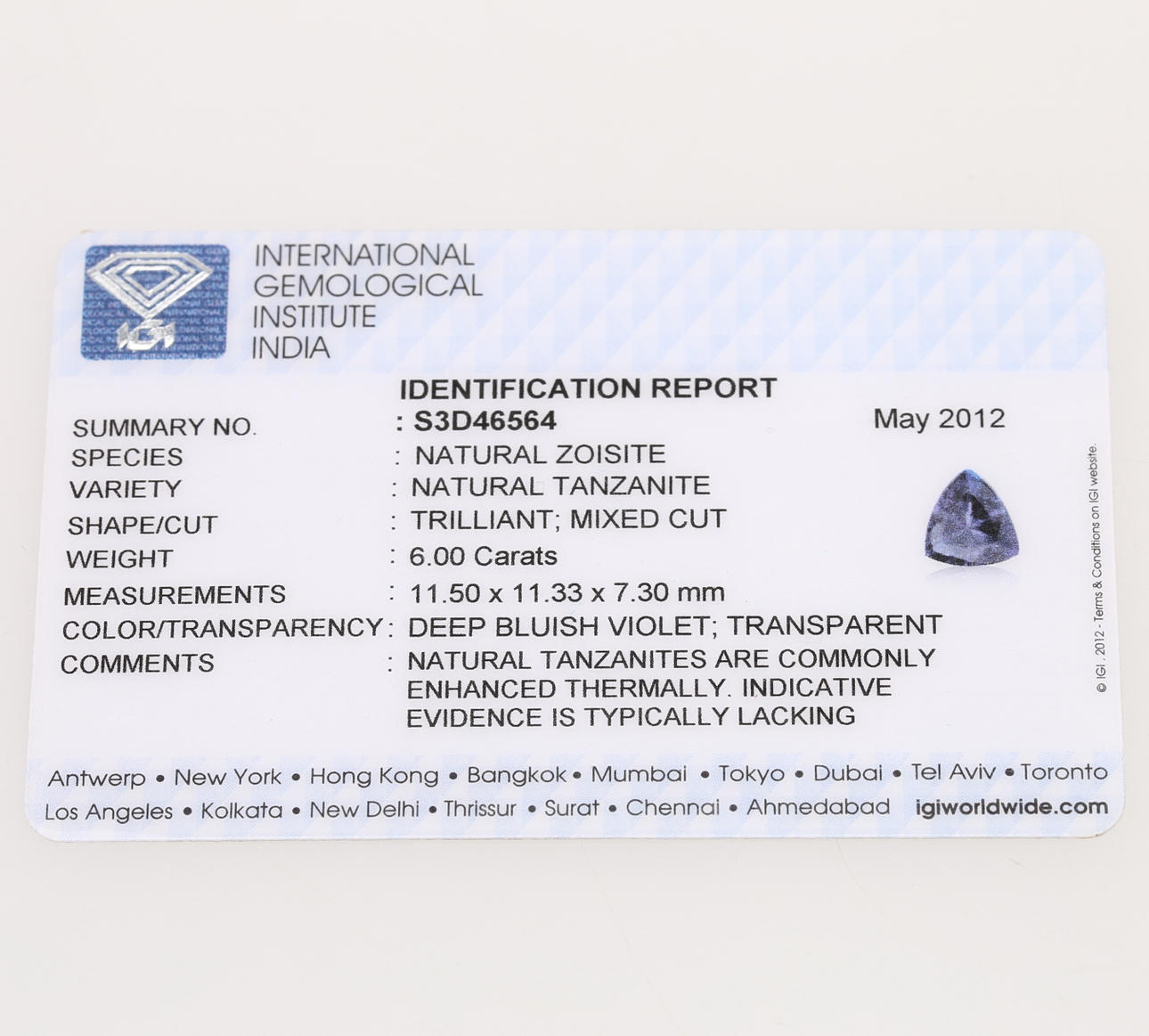 TRILLIAN CUT TANZANITE, 6 ct. blue/violet/green.