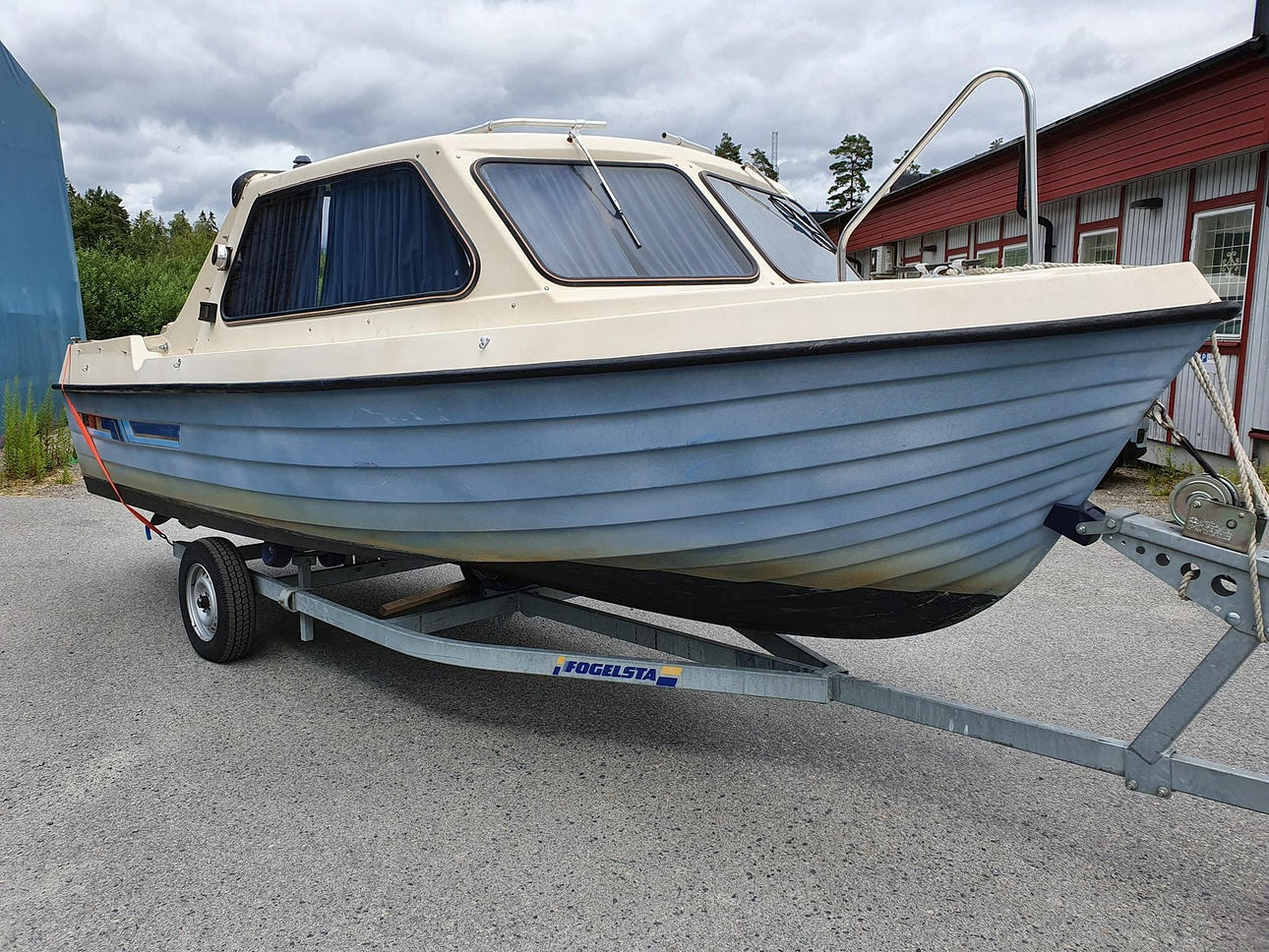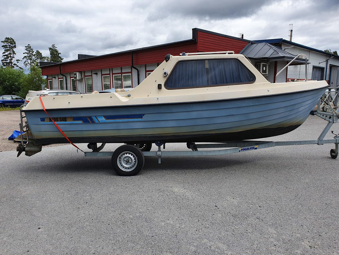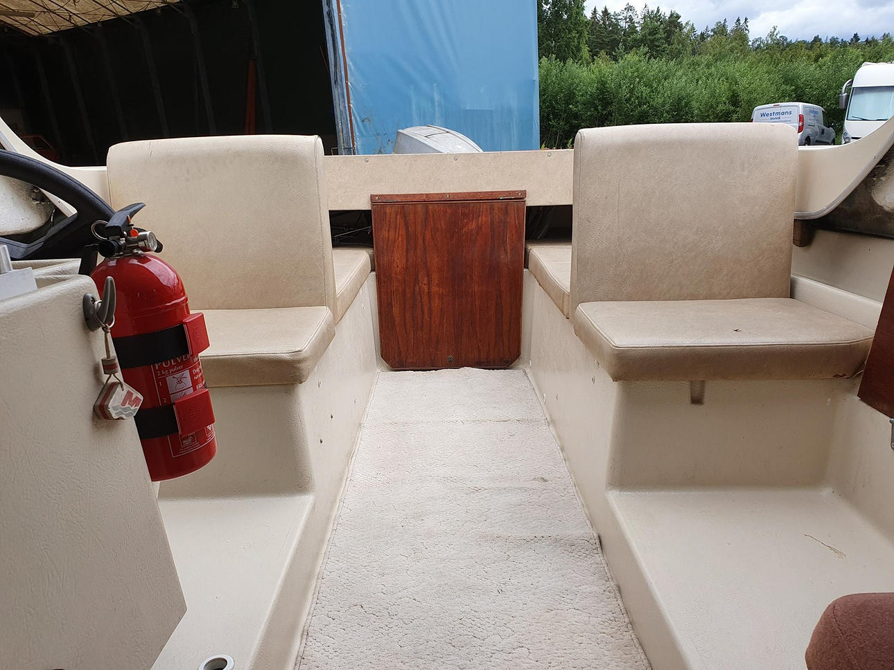 5.68 m. For 7 people. Engine 70hp. Sonar, fire extinguisher, kitchen, 2 batteries, one each for starting and lighting. Trailer included.