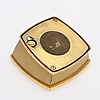 Brass and gold-plated white metal, mineral glass, manual assignment, date, eight-day movement, reference number 7015, 87x87x47 mm.