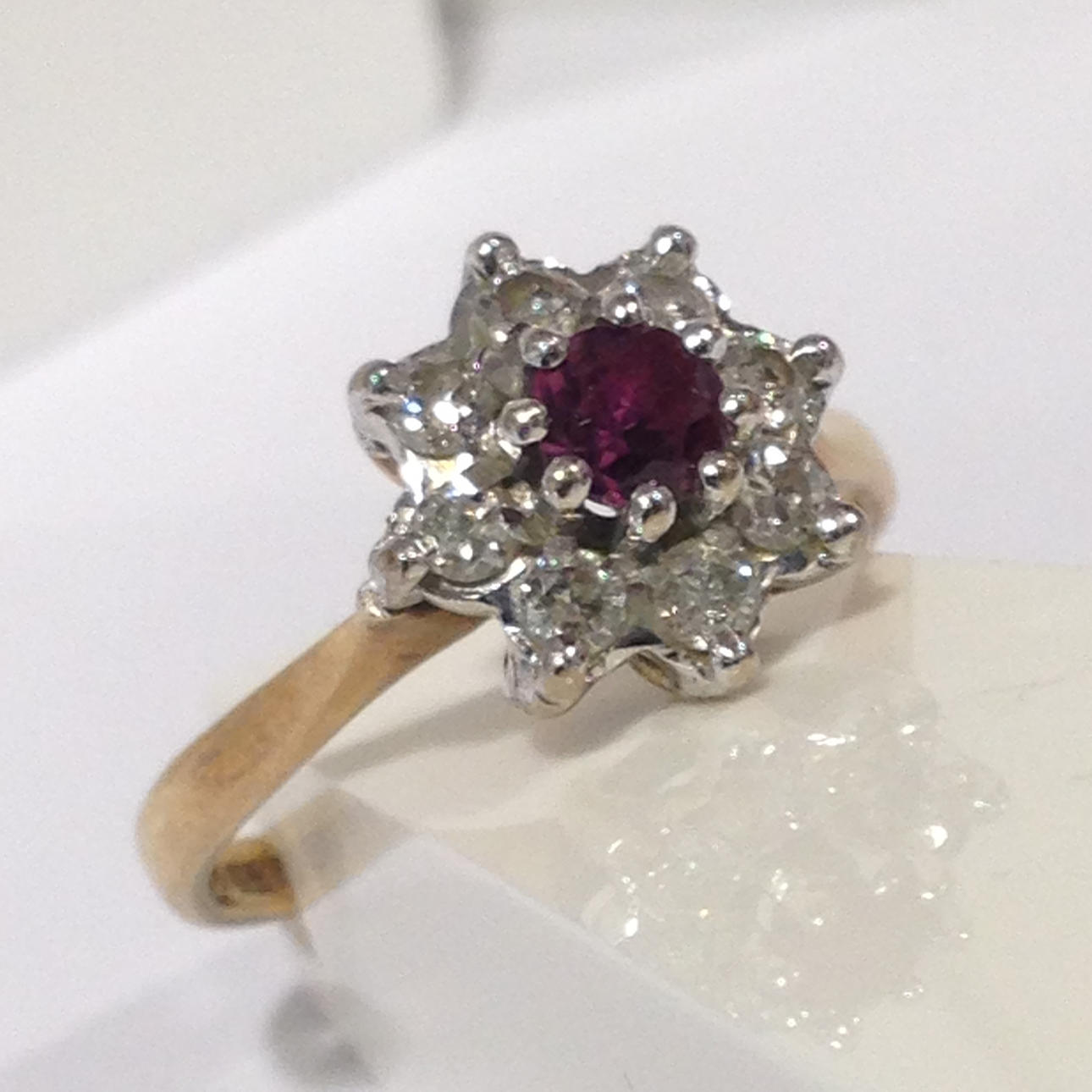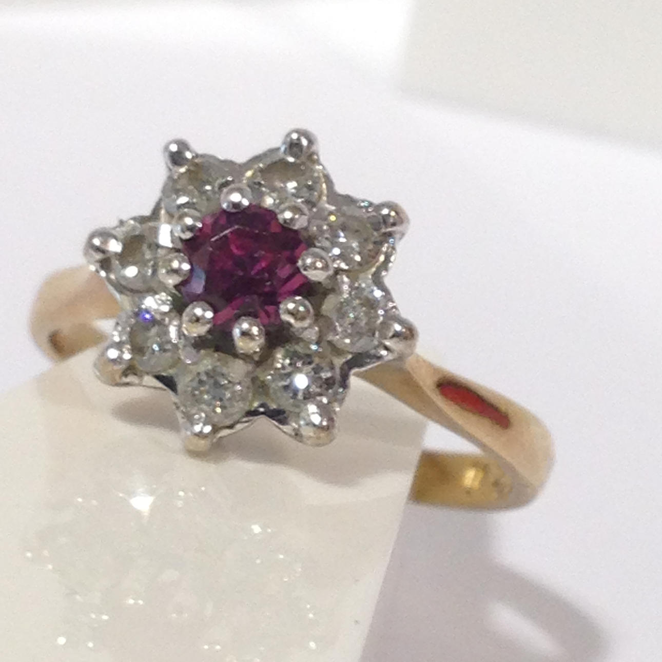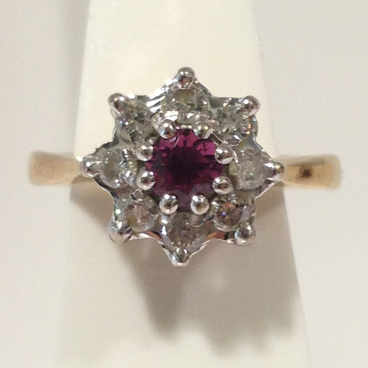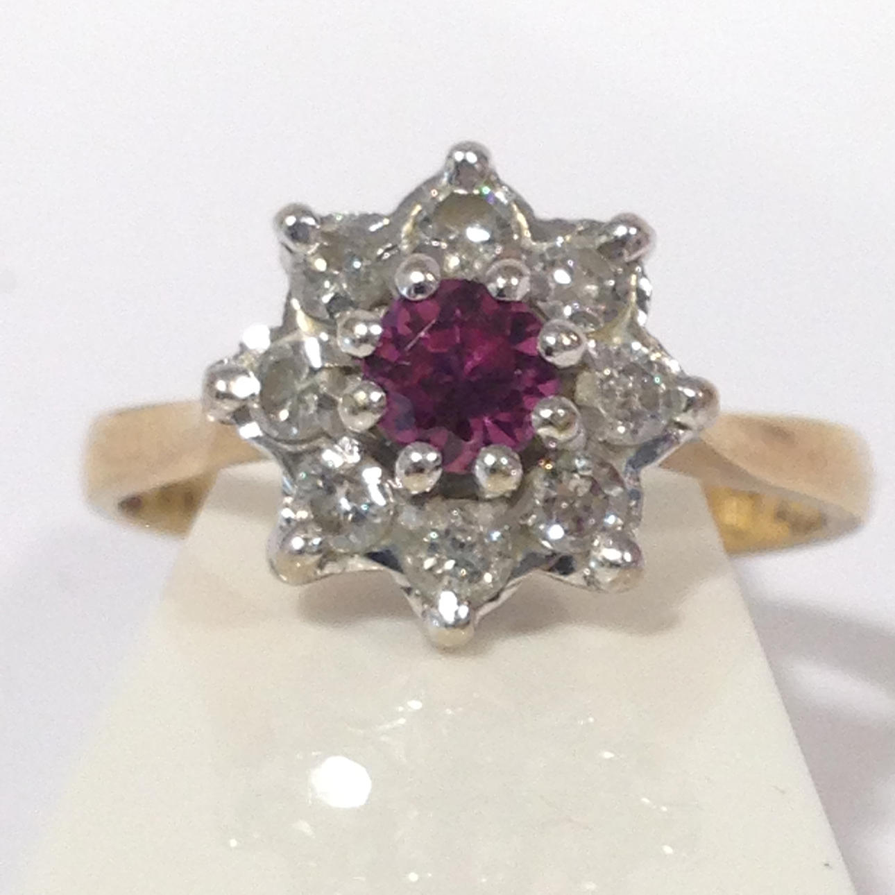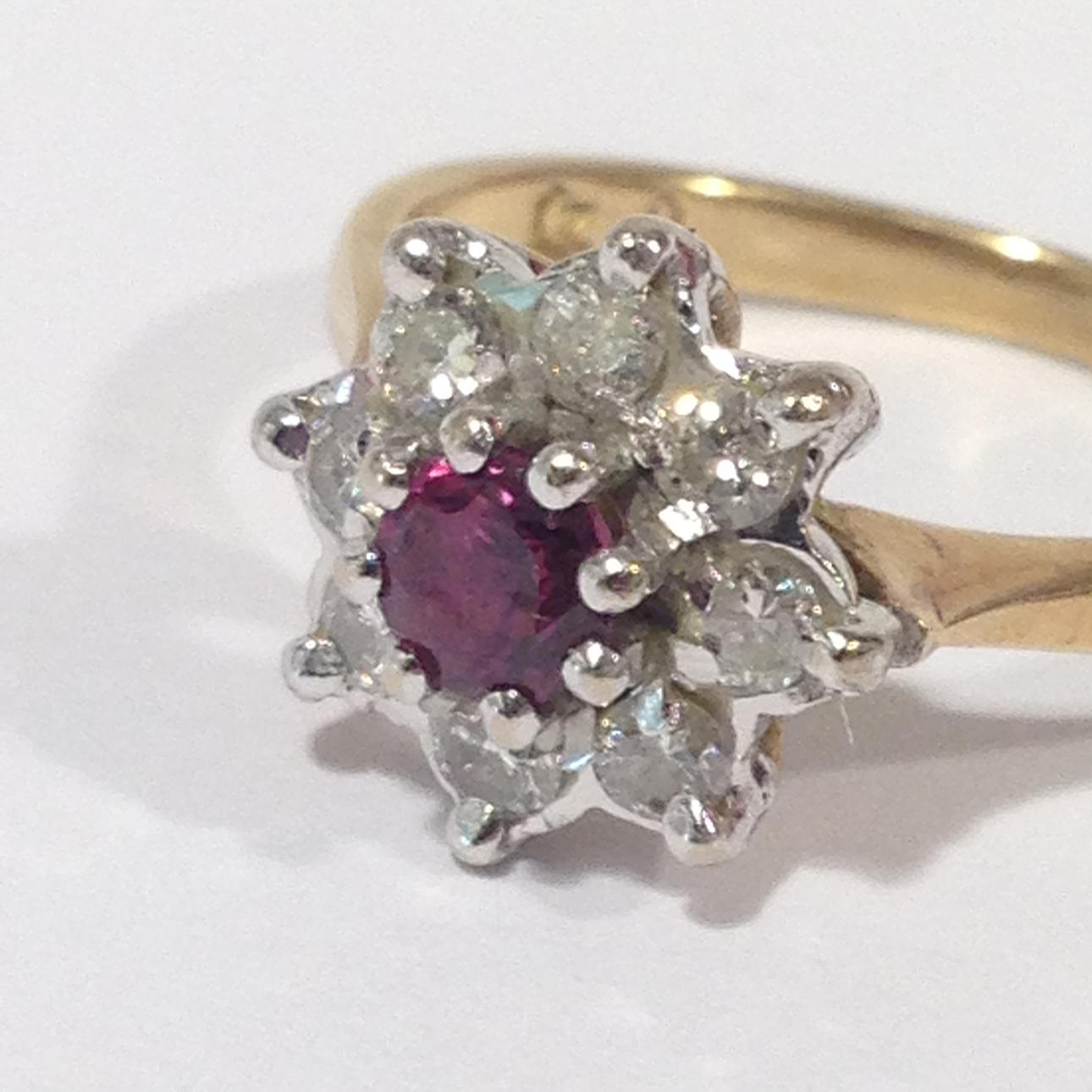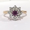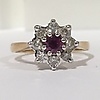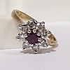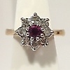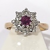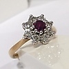 A cluster ring set with ruby and diamonds in 18k yellow gold (hallmarked).