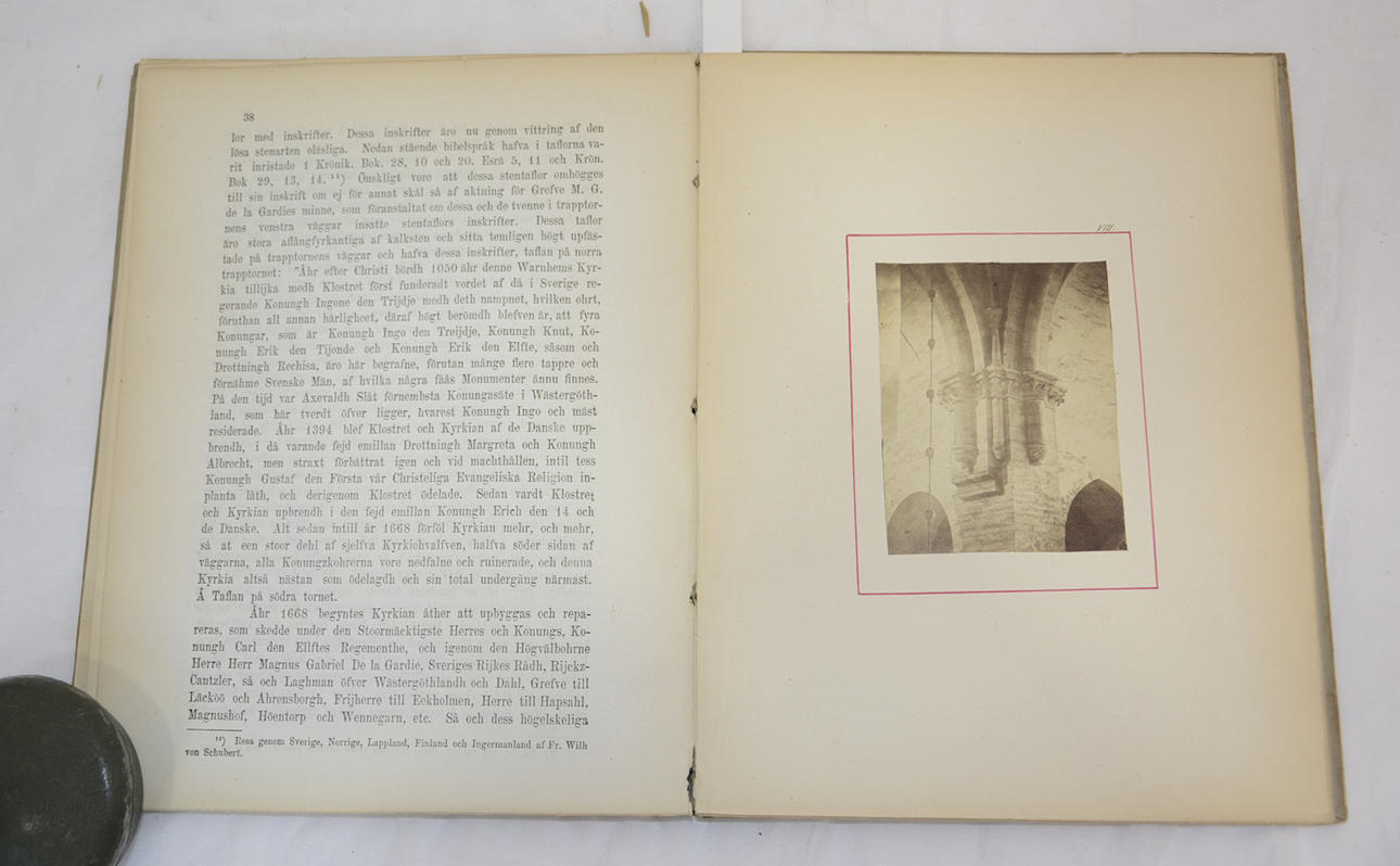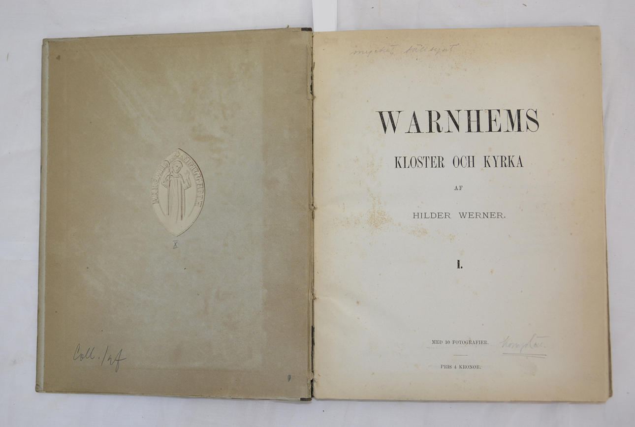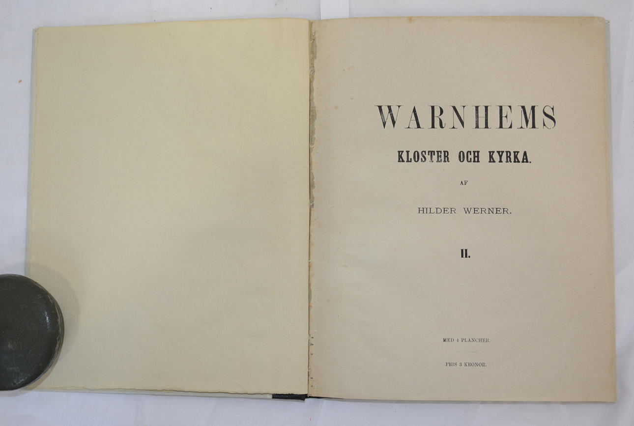 WERNER, HILDER. I – II: -I. - With 10 Photographs. 51 pp., 10 plates (photos pasted on cardboard; actually 9 but the 10th photo is, according to previous cataloguers, the same as the photo pasted on the inside of the front cover of the seal, 'ARNEHII SIGILL ABBA'. Lidköping, Pettersonska Boktryckeriet, 1878.