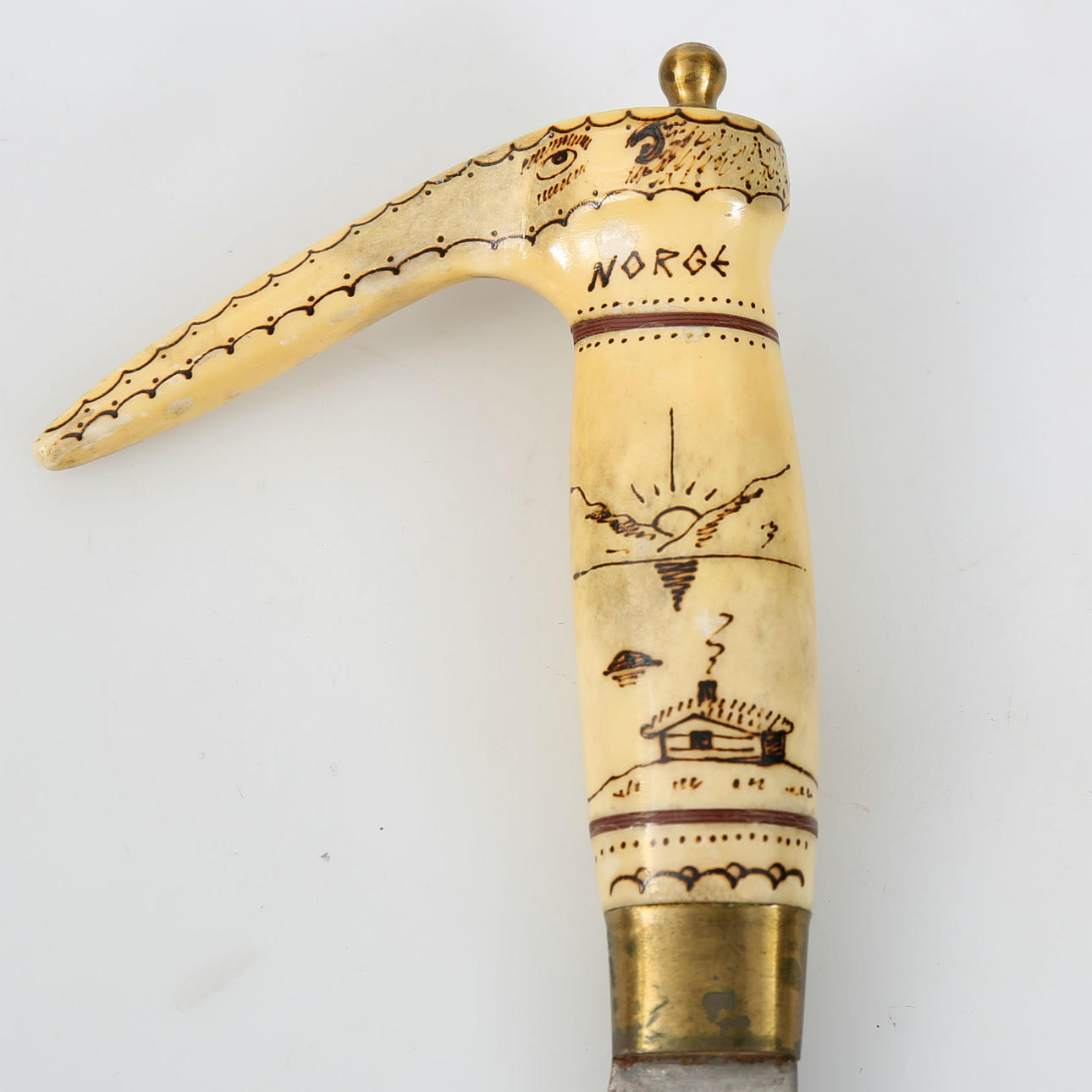 1119987. KNIFE AND CASE, bone and leather, Svinesund, Norway.