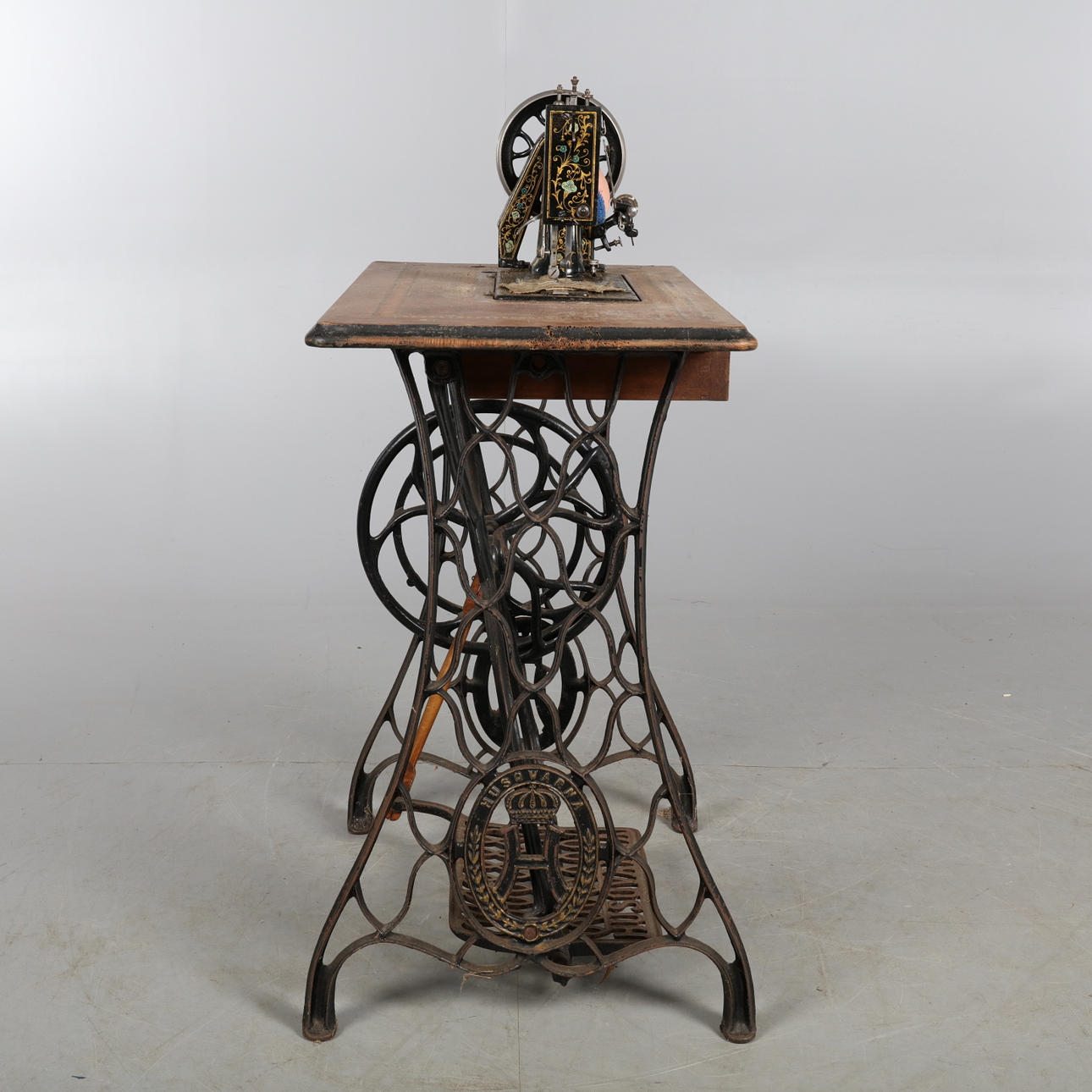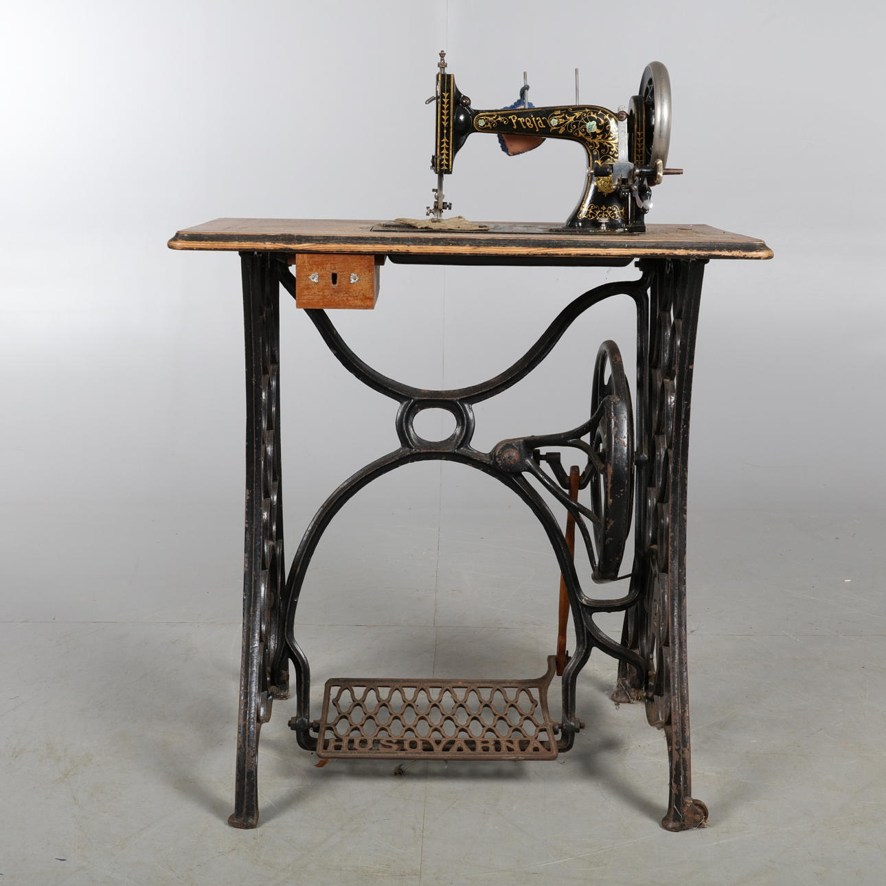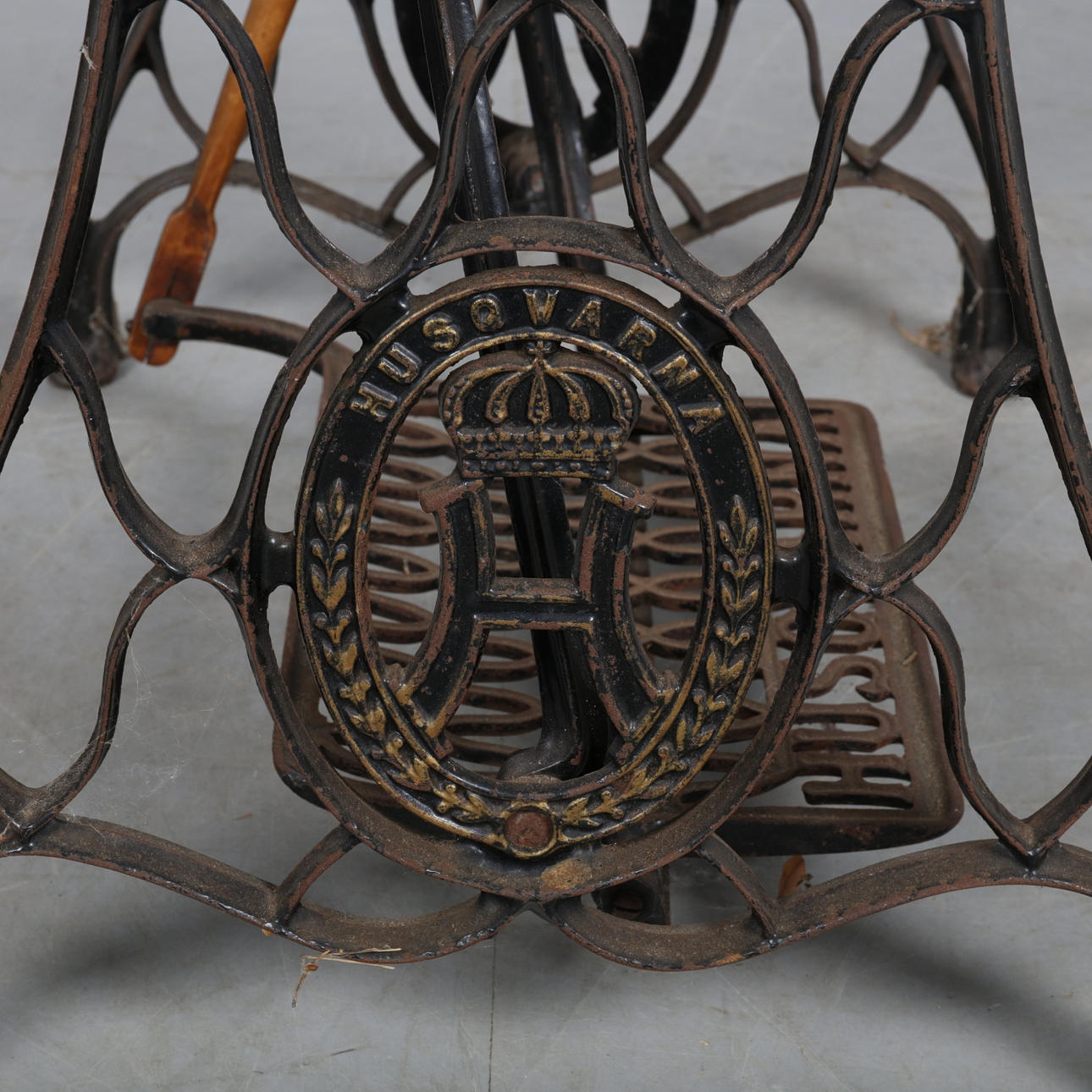 Sewing machine Husqvarna with iron stand Height approx. 74 cm Width approx. 74 cm Depth approx. 41 cm.