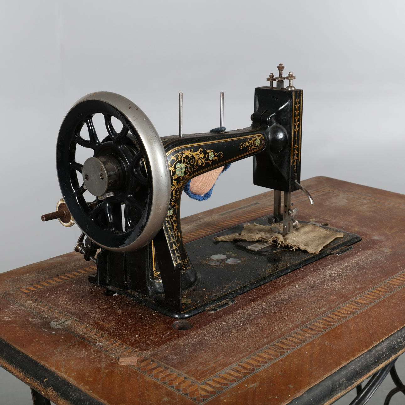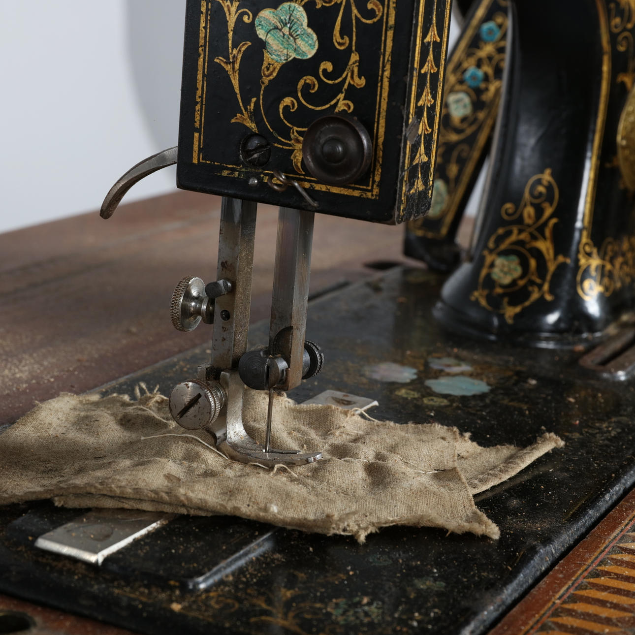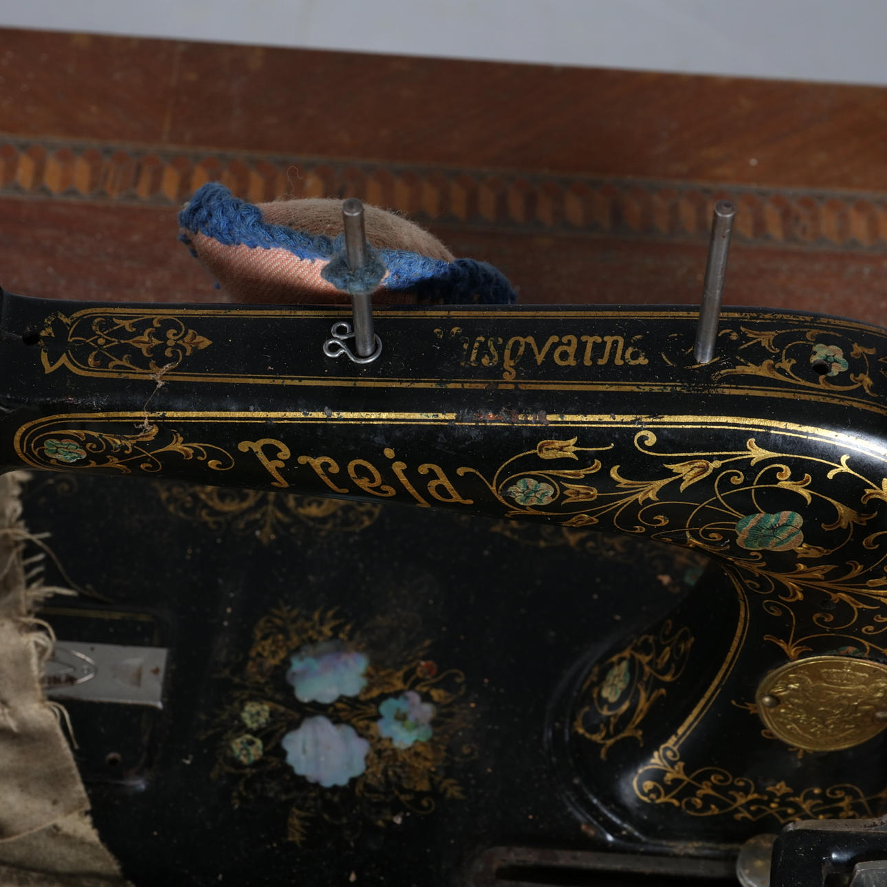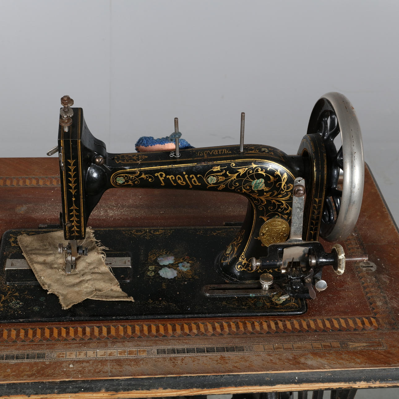 Sewing machine Husqvarna with iron stand Height approx. 74 cm Width approx. 74 cm Depth approx. 41 cm.