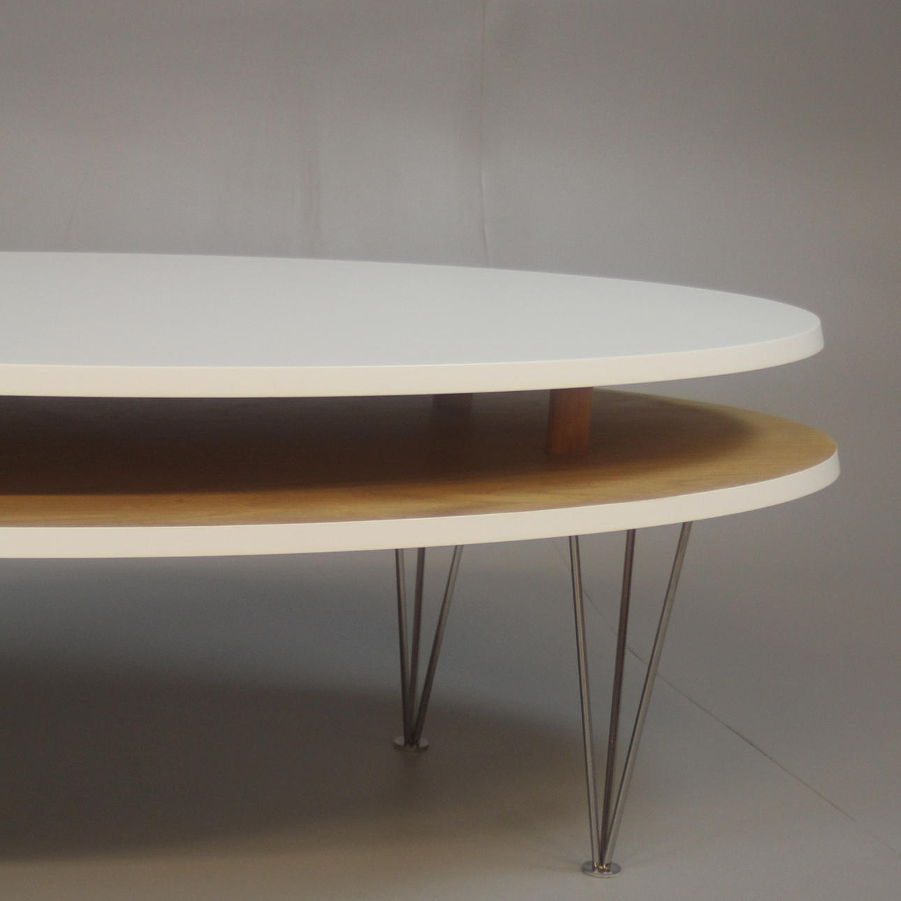 COFFEE TABLE white lacquered MDF/ oak veneer.