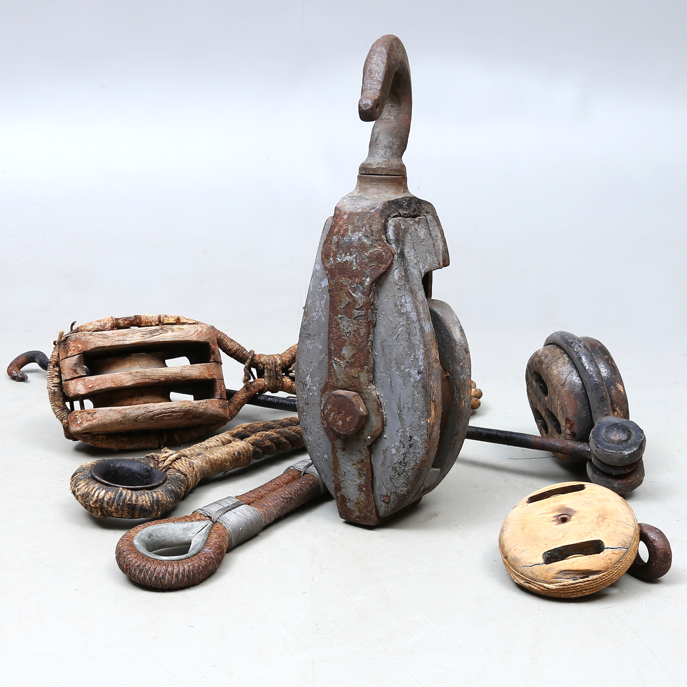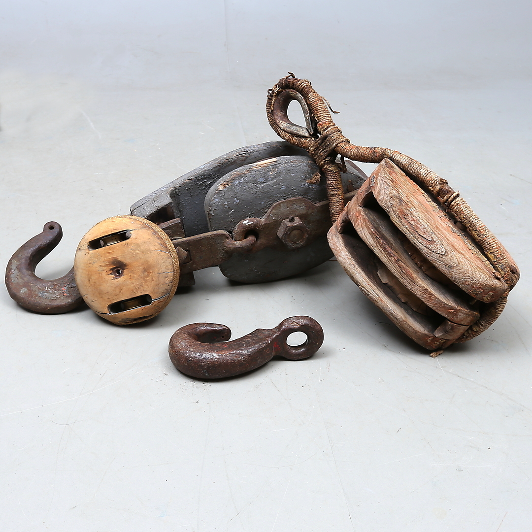 1131473. BOAT ACCESSORIES, including blocks, ropes and hooks.
