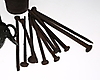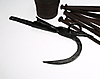 HOUSEHOLD TOOLS, iron nail, hook and mortar.