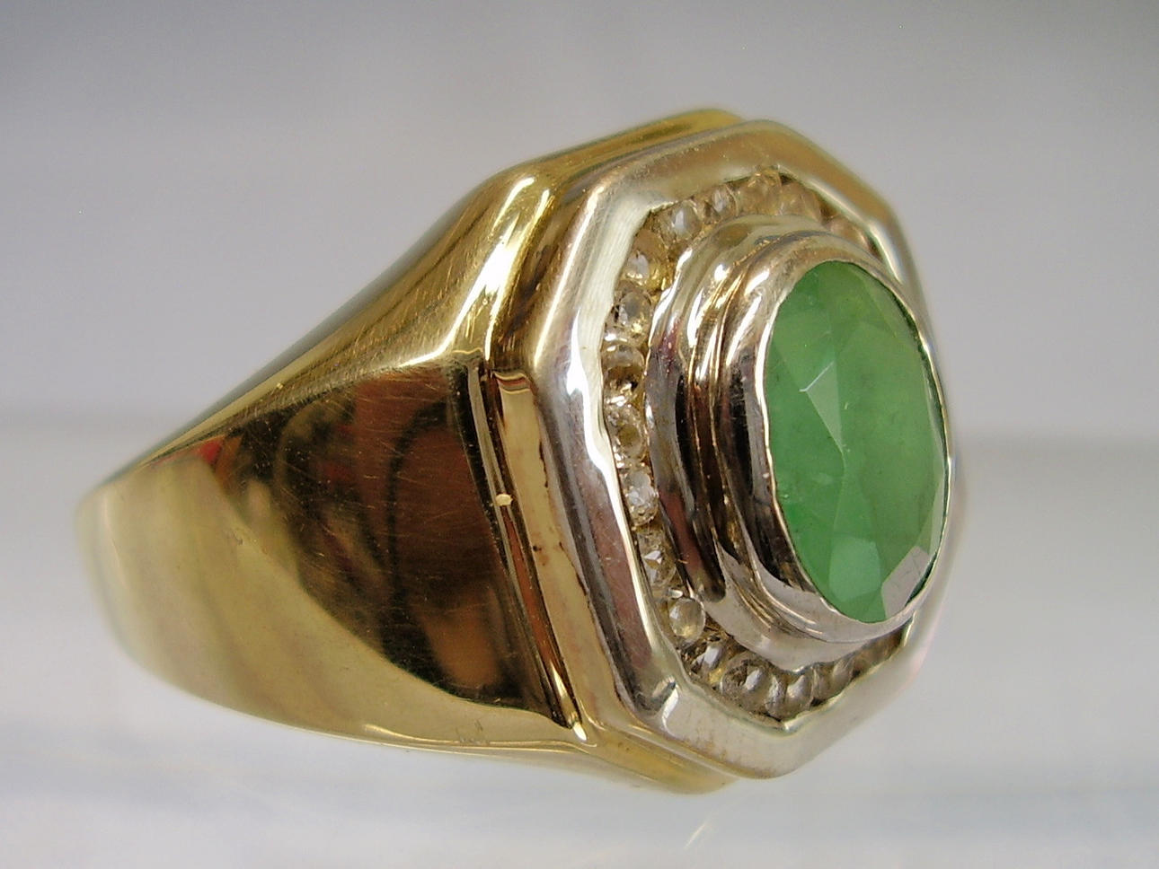 1142780. MEN'S RING EMERALD - WHITE TOPAZ.