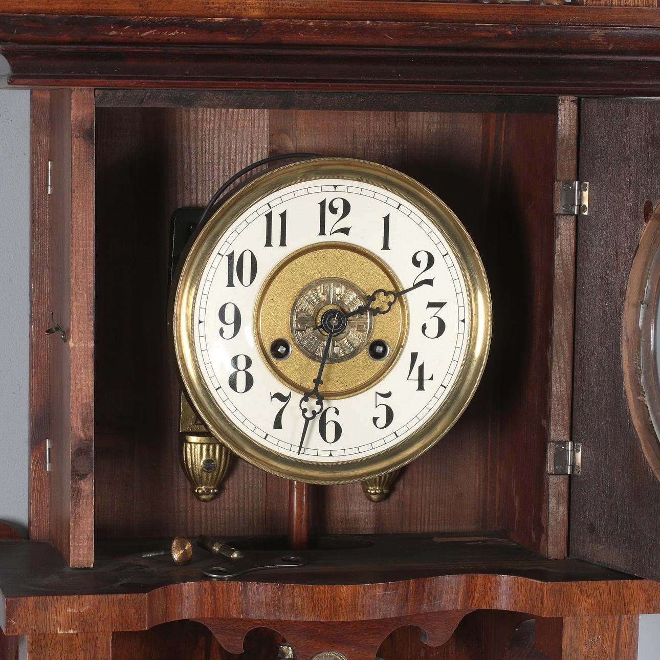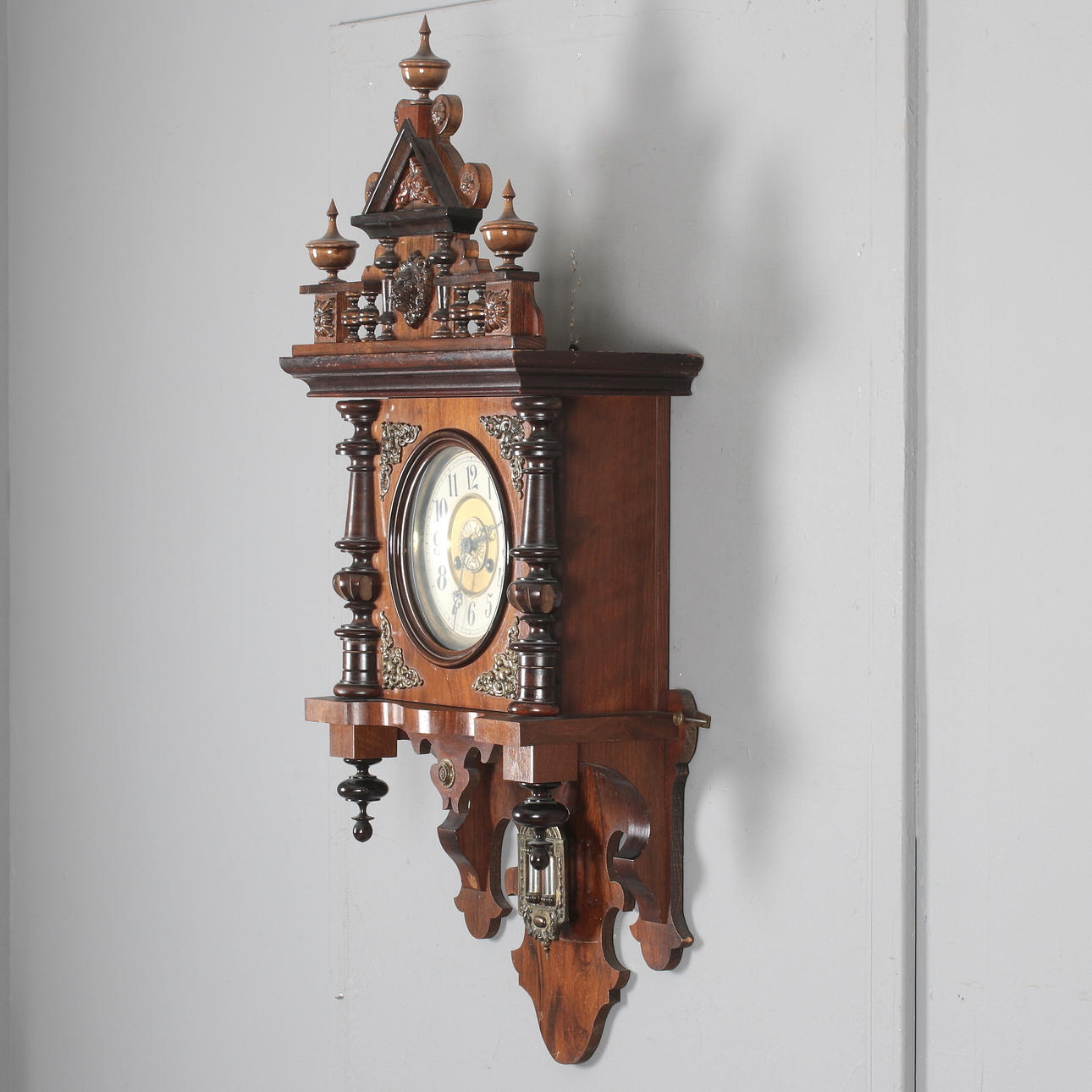 Veneered in walnut. Turned and cast decor. Length approx. 43, width 18.5, height 92 cm.