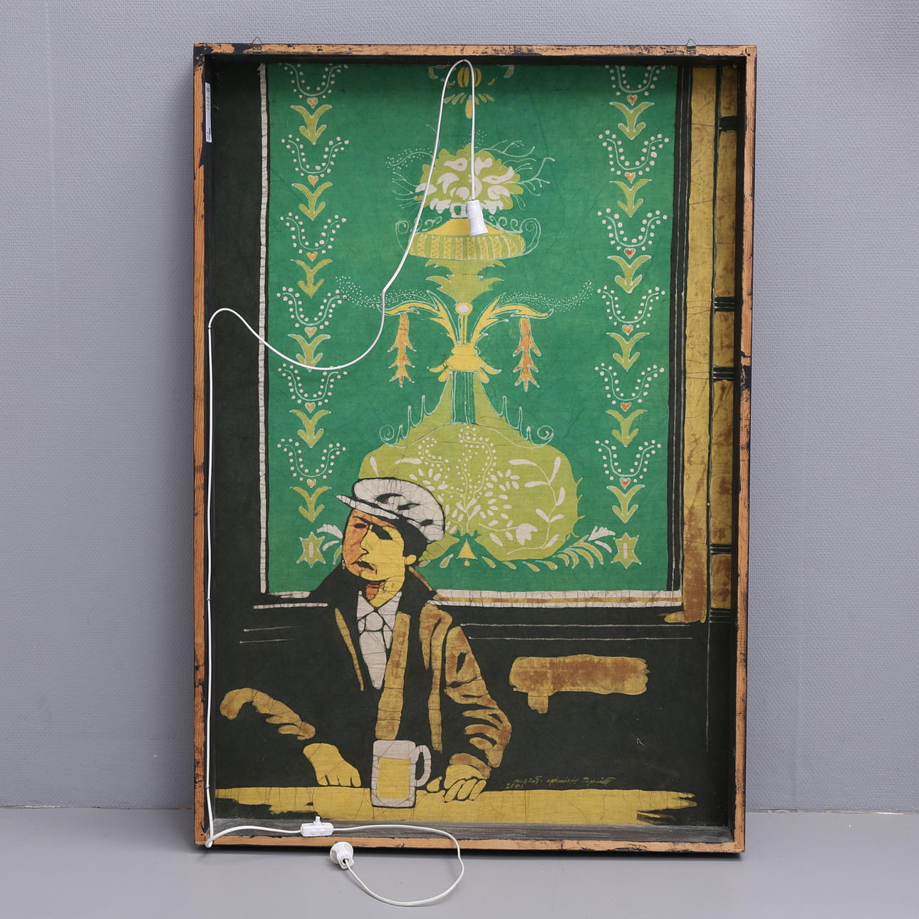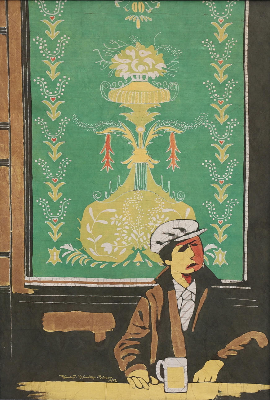 1147245. BIRGIT HEINTZE - PETTERSSON. Man with glasses, batik, signed.