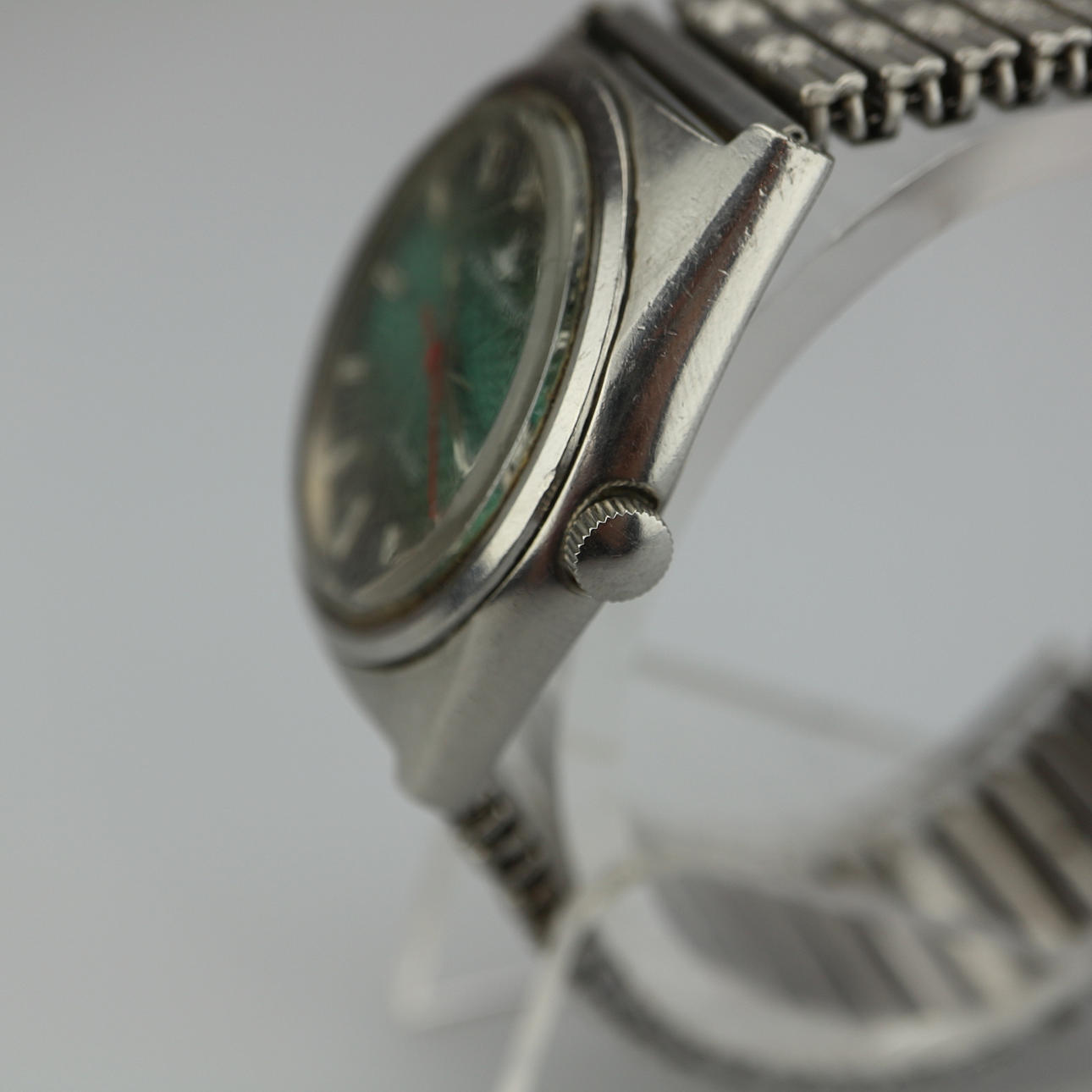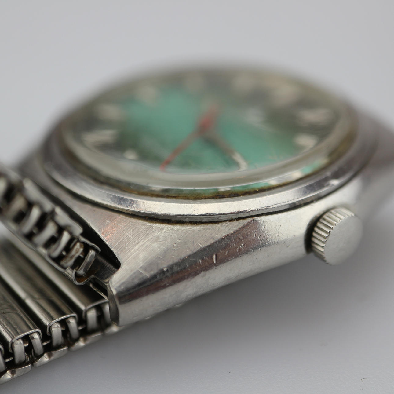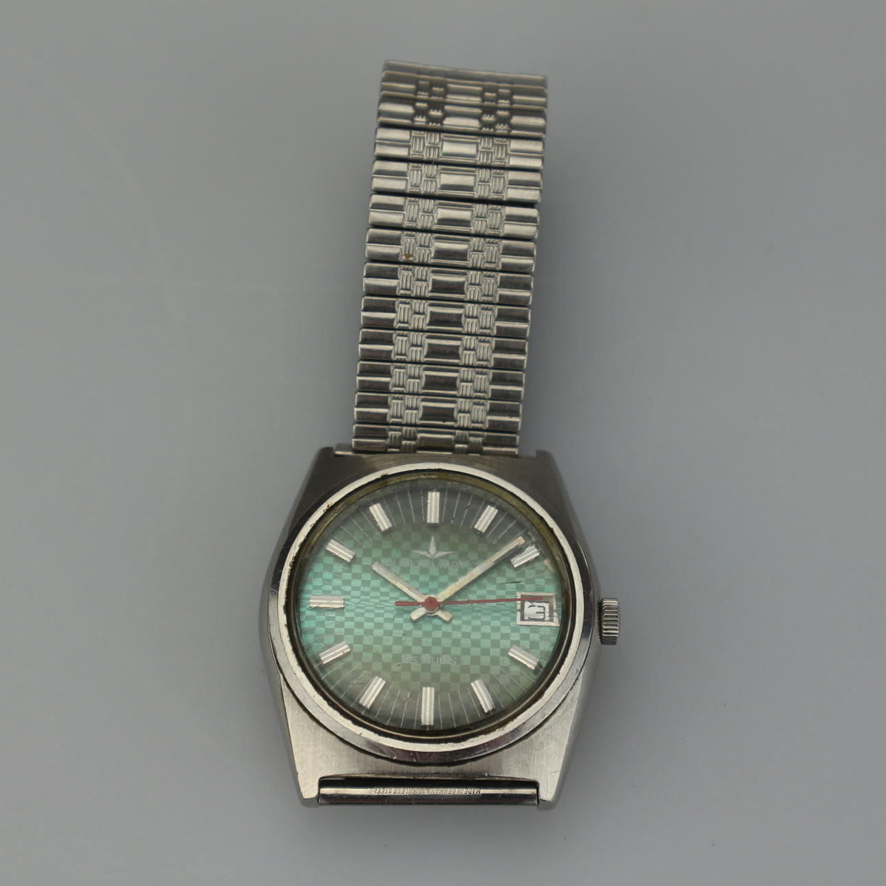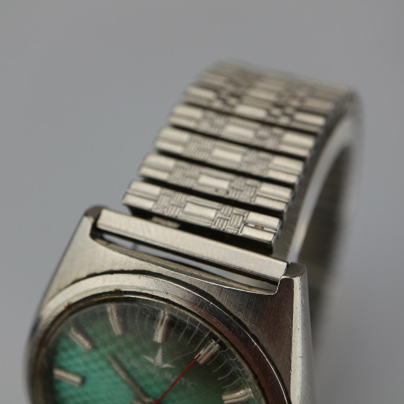 Men's steel wristwatch, date display, automatic movement 25 rubies, with flexible bracelet. 69.70 g, Ø dial: 27 mm. 1980s.