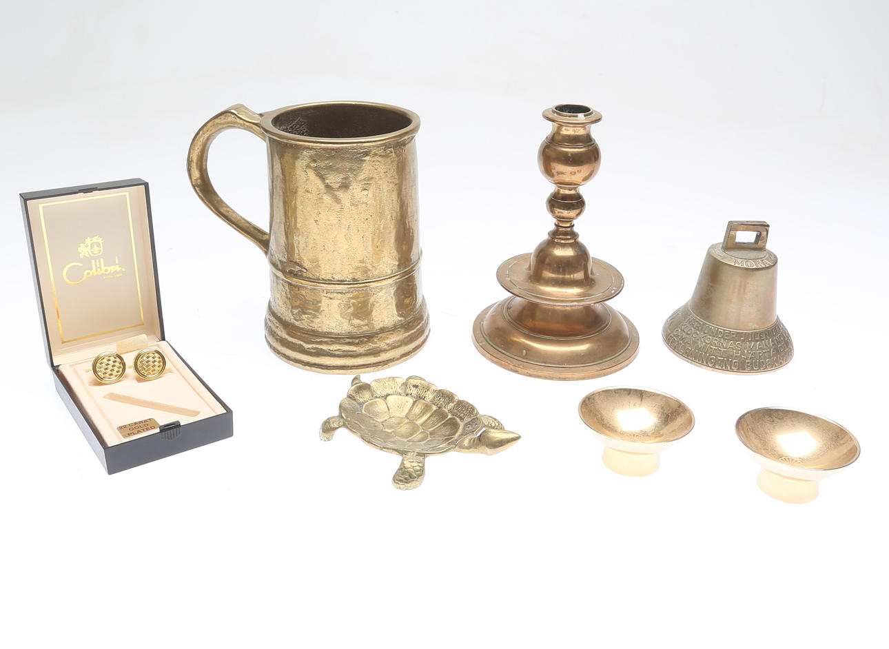 1153255. METAL OBJECTS 7 pcs, brass and gold-plated objects, 1900s.