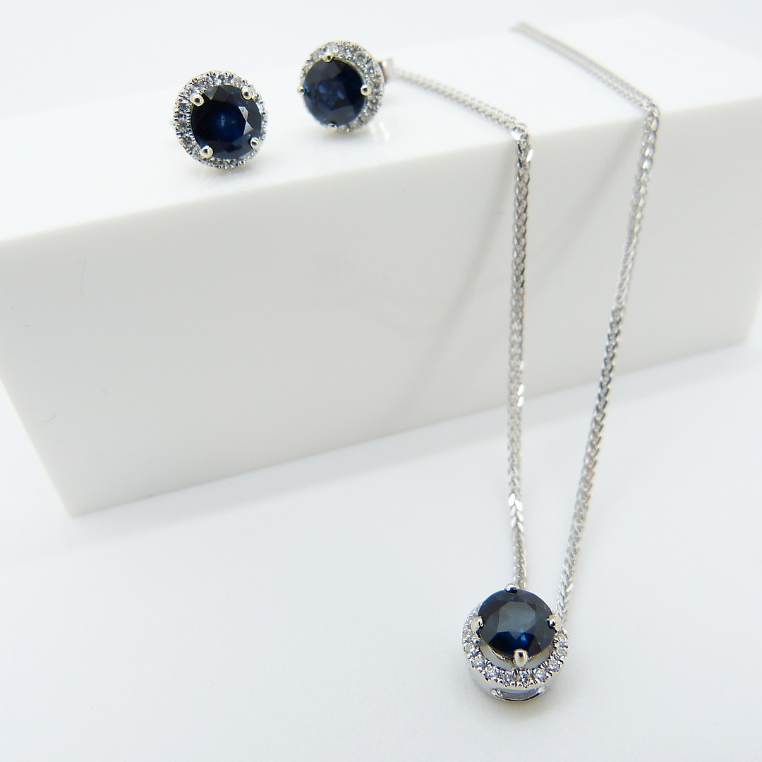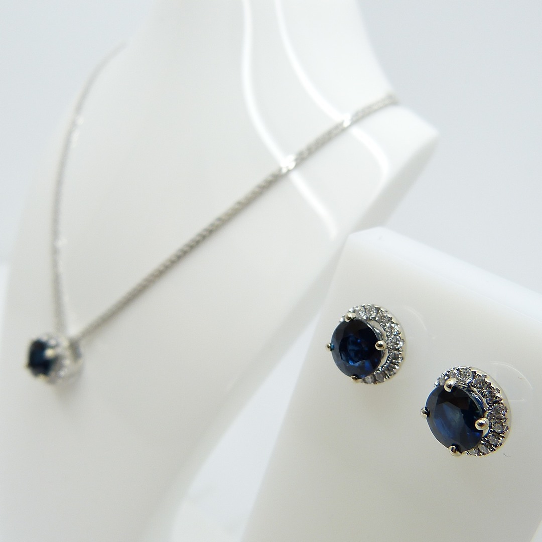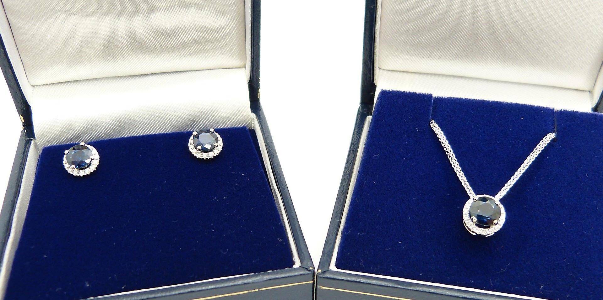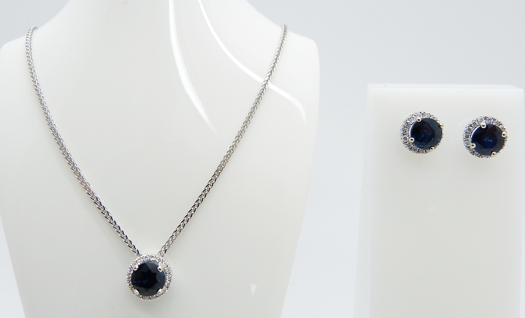 1154231. SAPPHIRE & DIAMOND NECKLACE & STUDS.