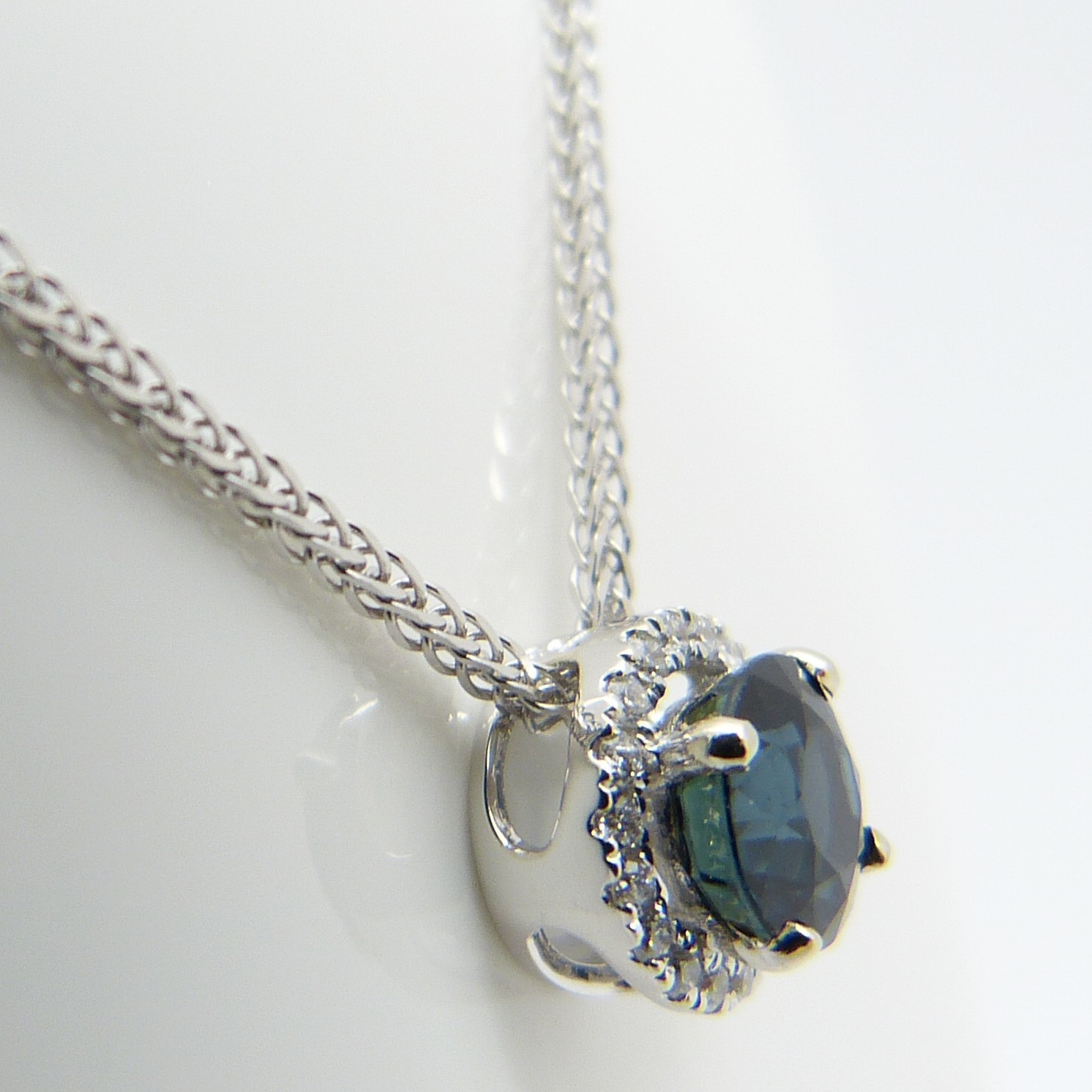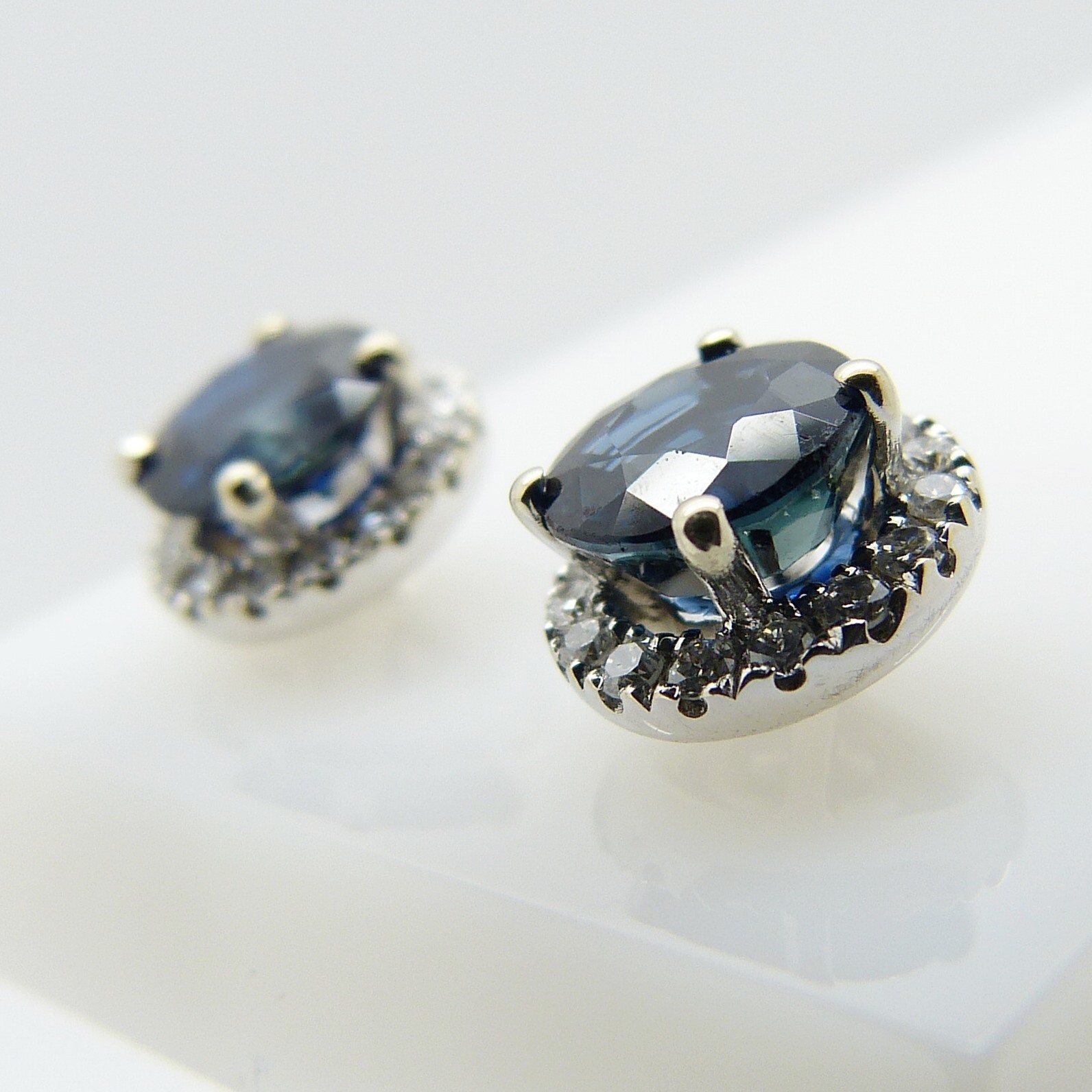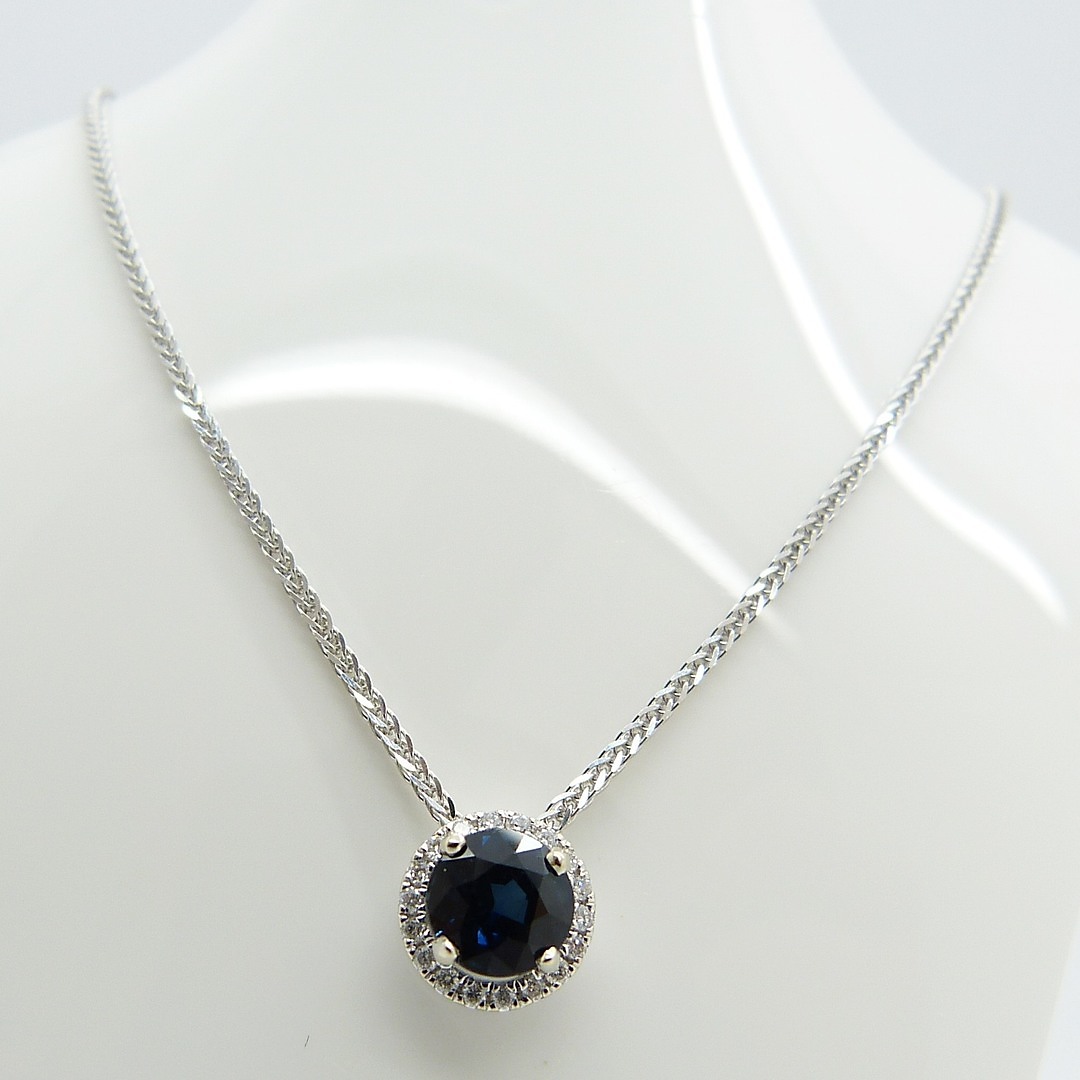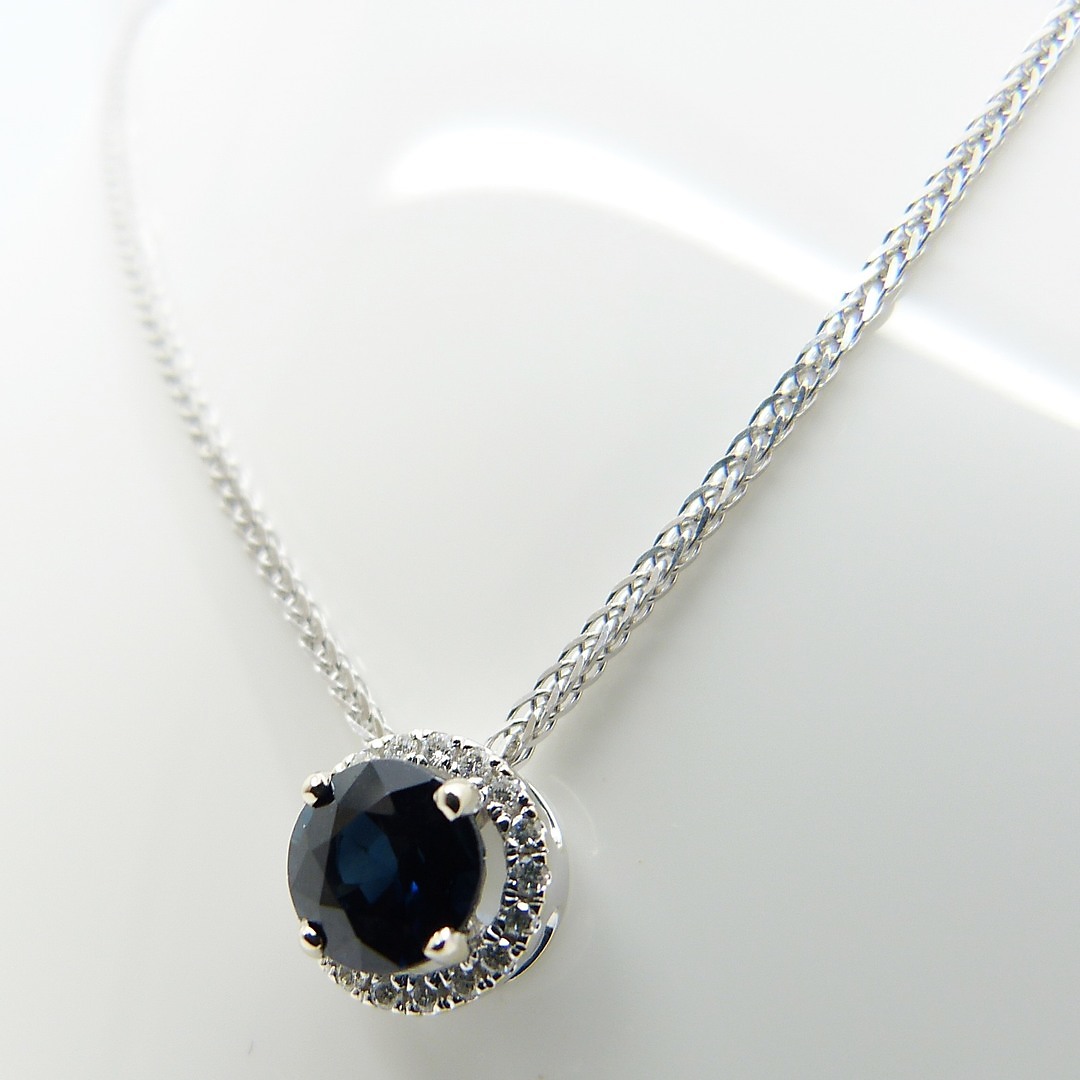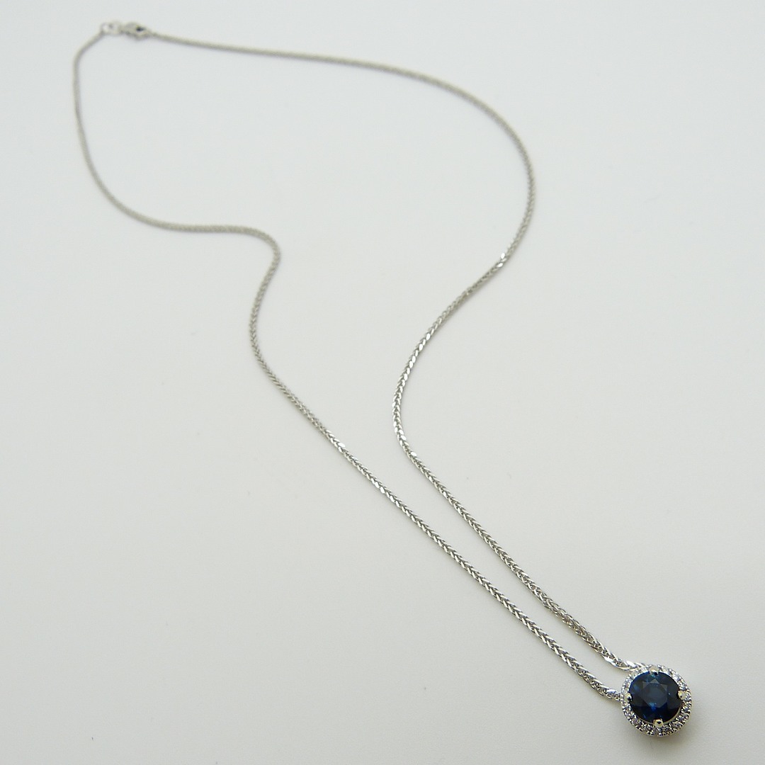 1154231. SAPPHIRE & DIAMOND NECKLACE & STUDS.