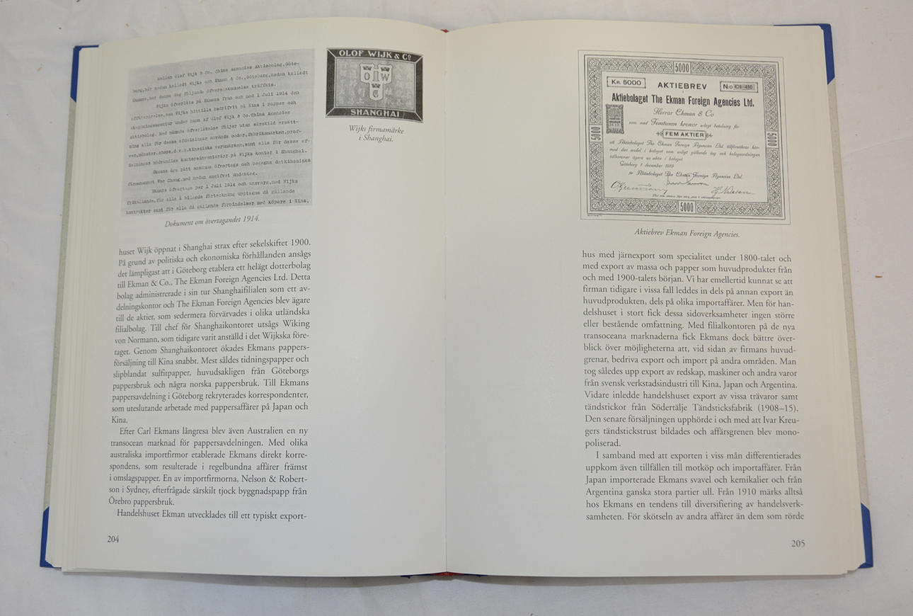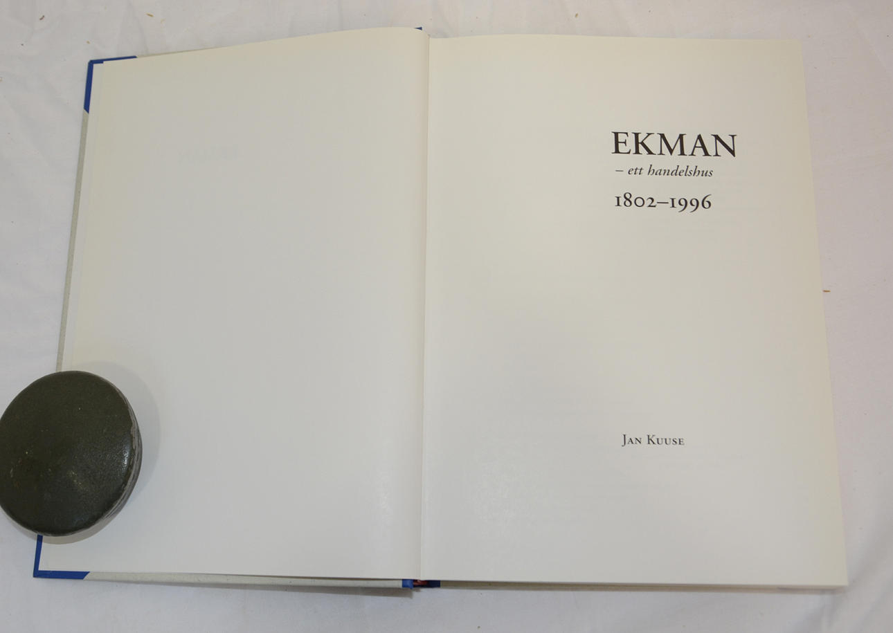 -KUUSE, JAN. EKMAN - a trading house 1802 – 1996. Gothenburg, Rundquists Boktryckeri, 1996. 4: o. 402 pp. Ill. In color and black and white. Well-tied decorated cardboard ribbon. Dedication to Johan Pihlgren. Two newspaper clippings are attached.