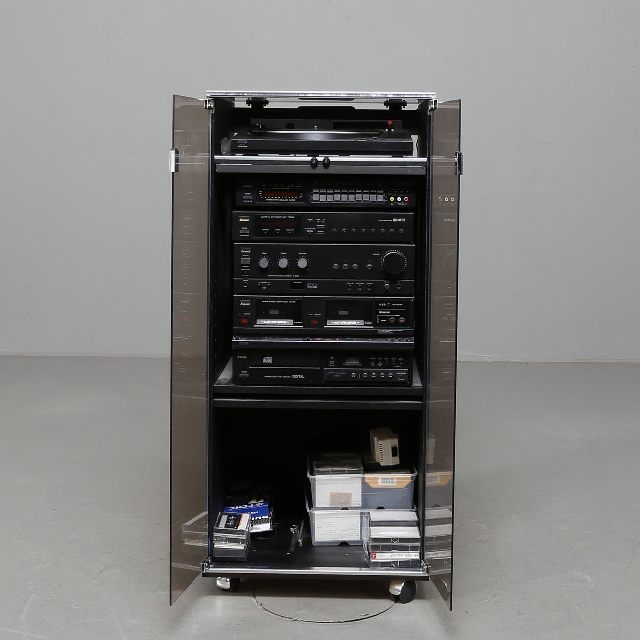 Remote control + stereo rack.