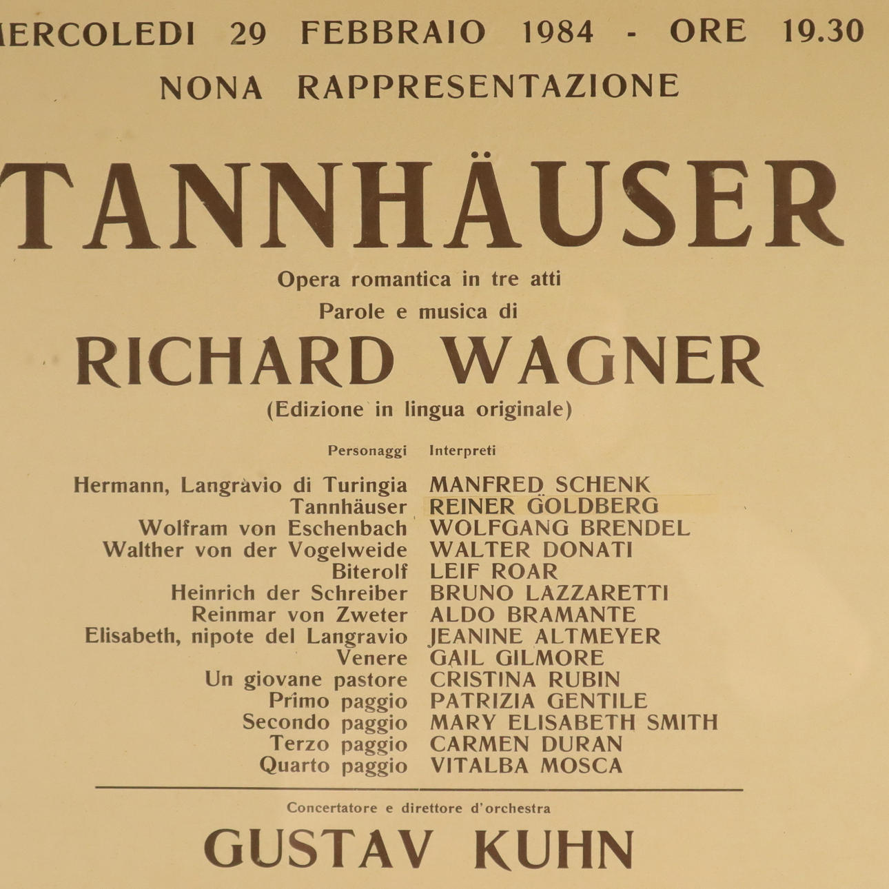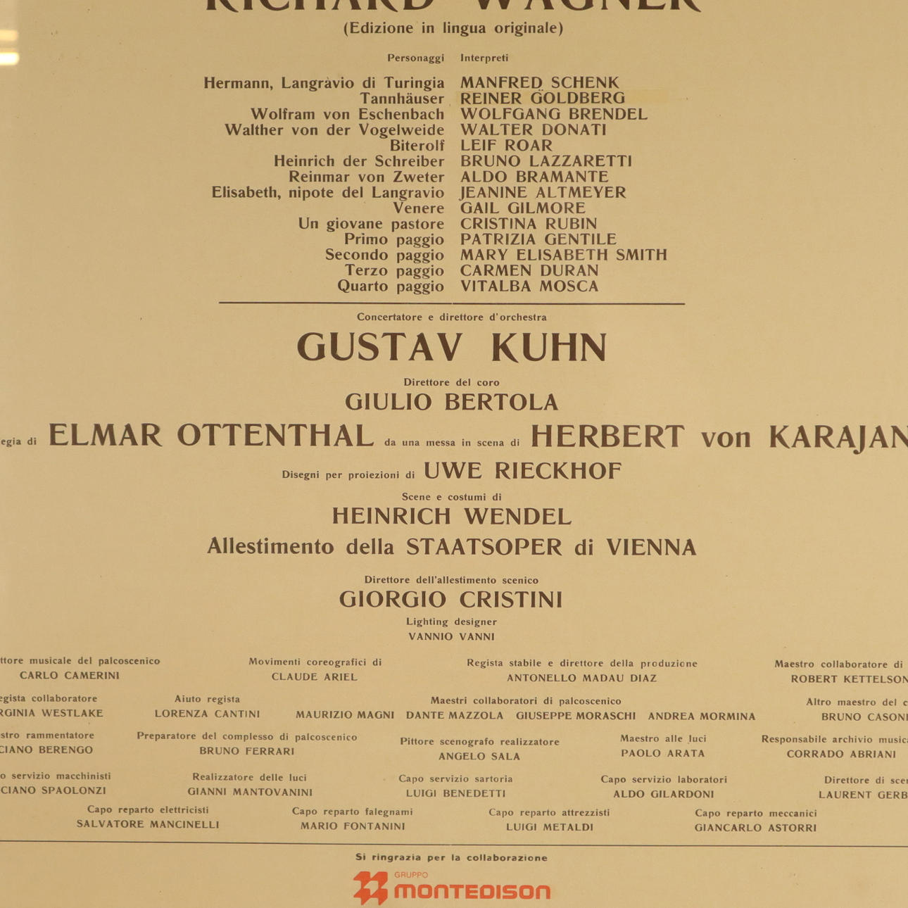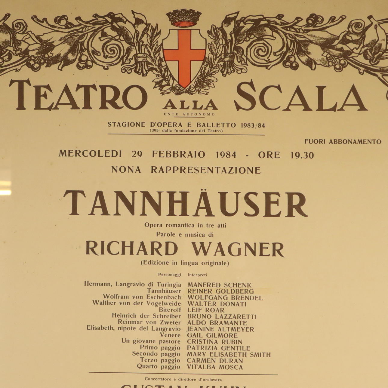opera poster for Richard Wagner's opera "Tannhäuser" - Teatro alla Scala, Milan 1984, framed under glass, frame dimensions: approx. 100x70.5cm.
