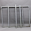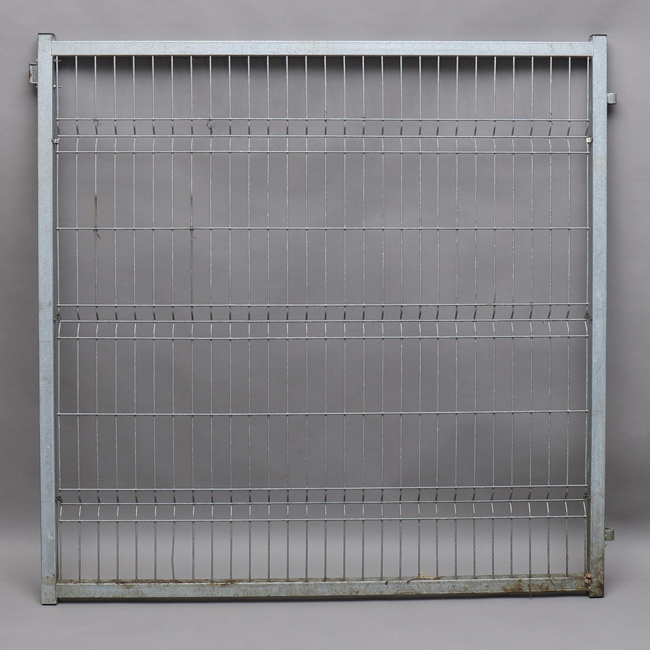Gates Height: 151.5 cm Width: 150 cm Posts Height: 155.5 cm & 160.5 cm Width (with screw): 25 cm Width: 6 cm x 6 cm Modern outdoor gates with associated posts in galvanized steel.