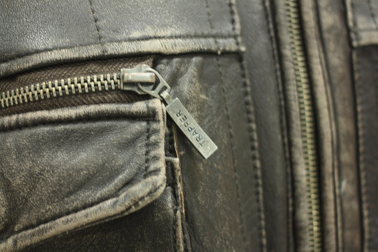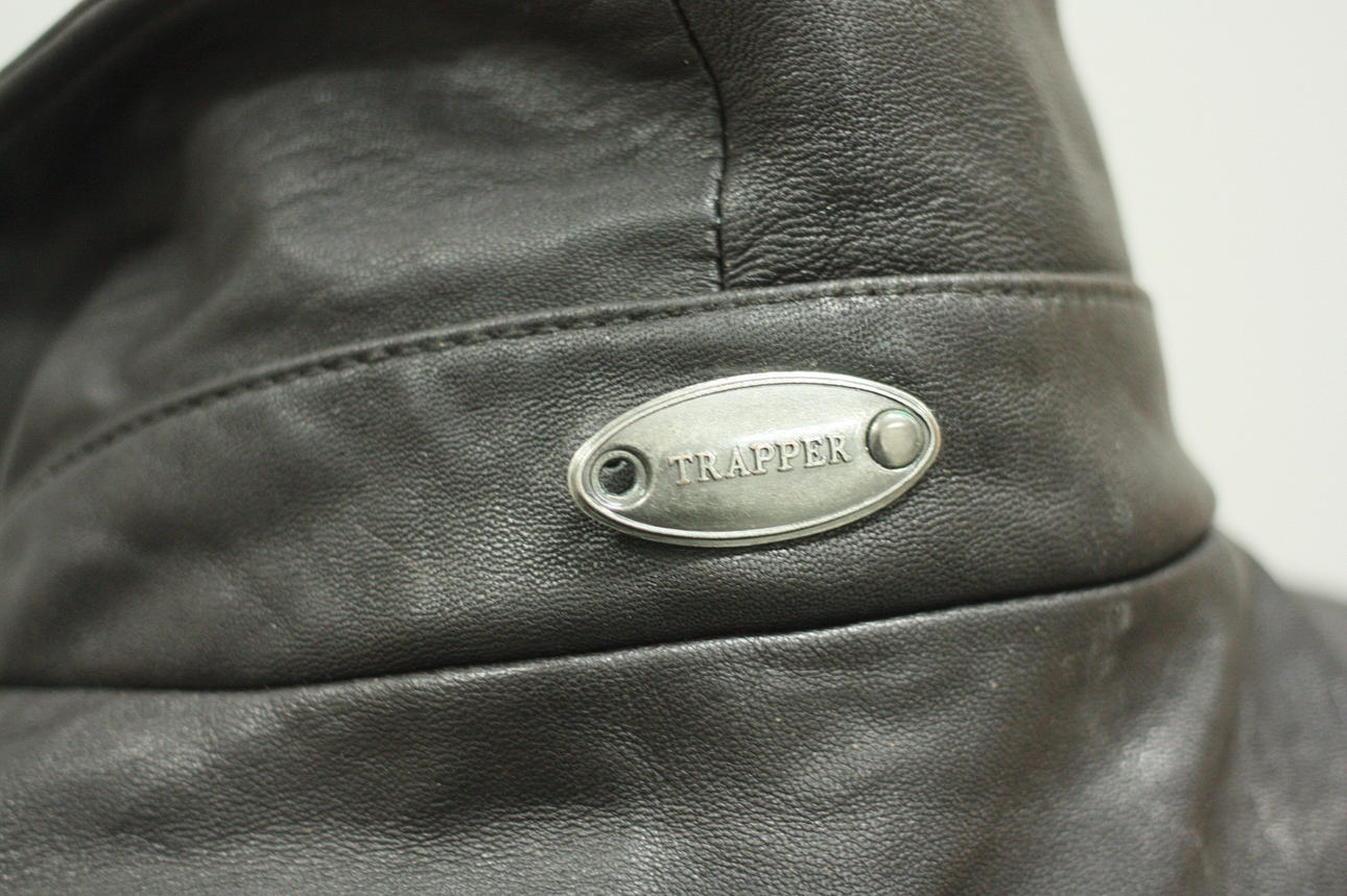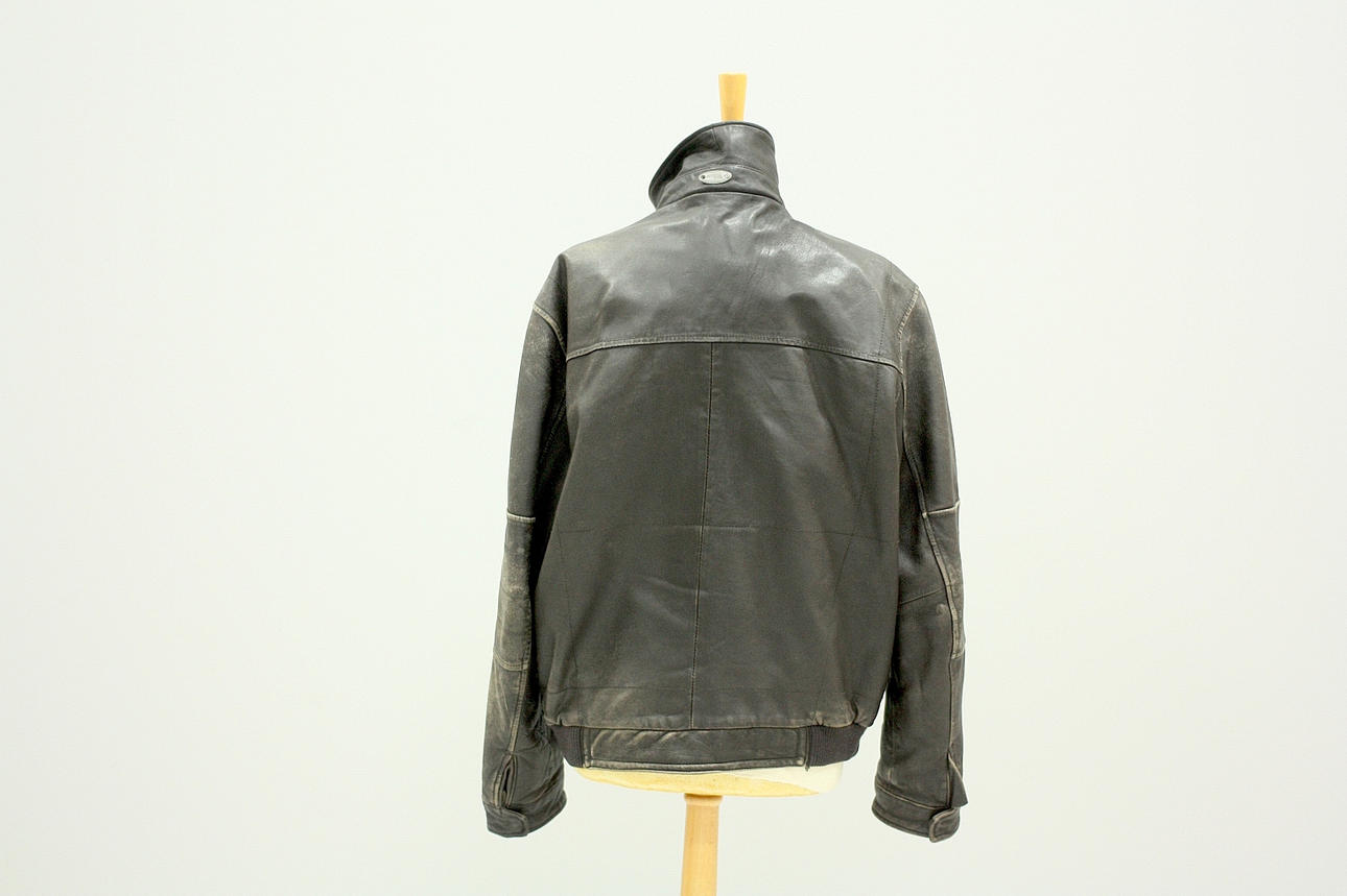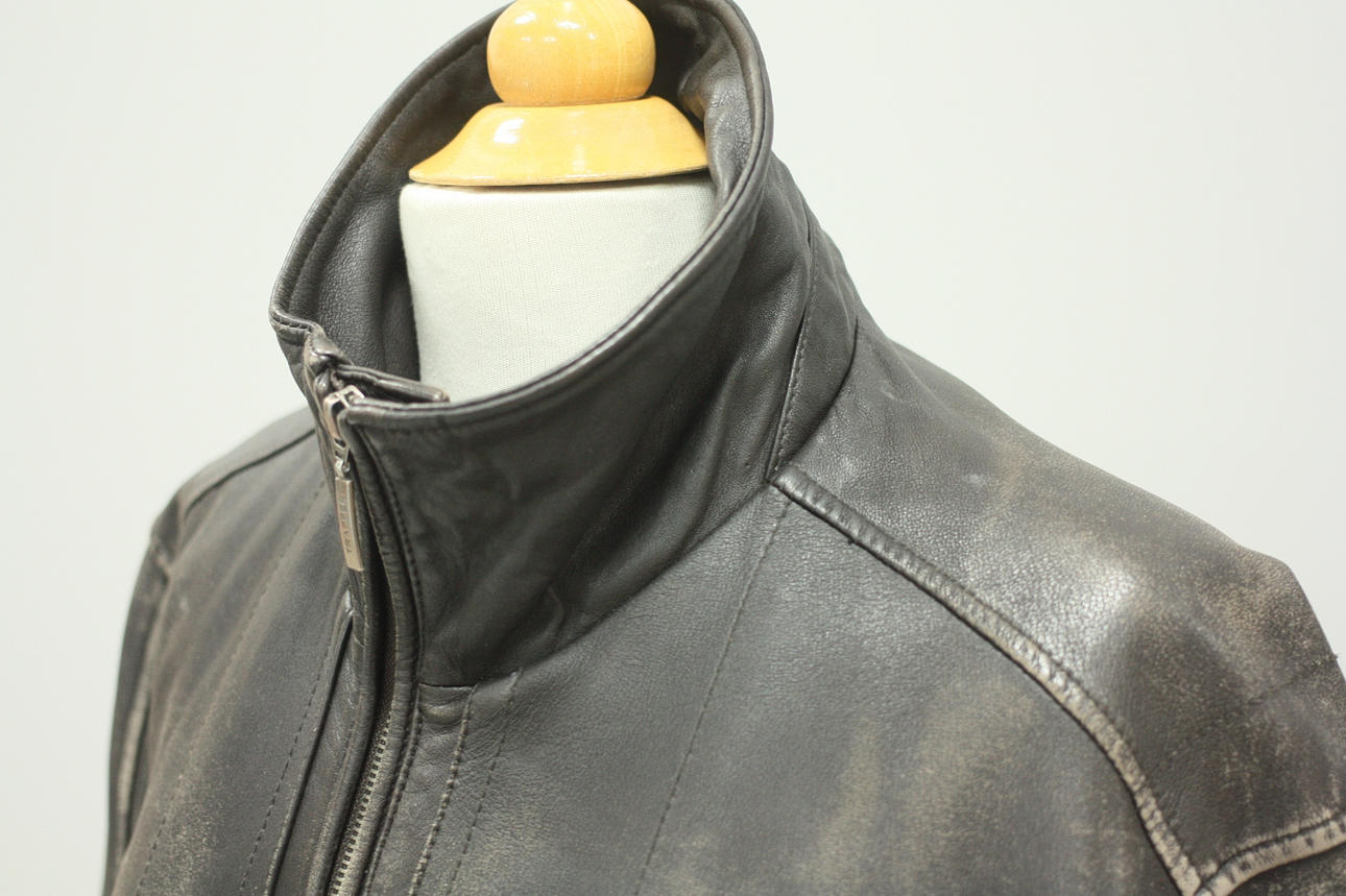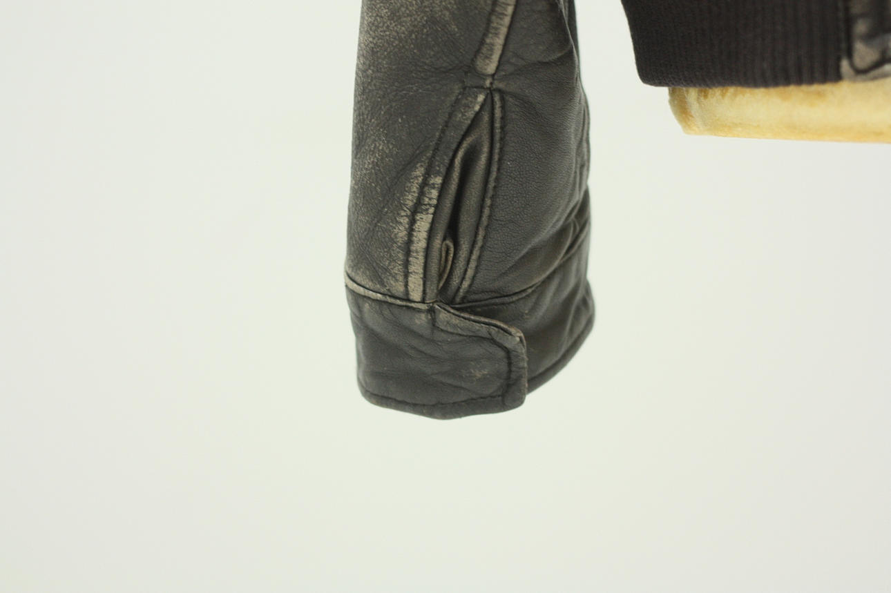 Lined leather jacket, pockets both on the outside and inside. Length from shoulder 69 cm Back length from shoulder approx. 63 cm.