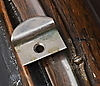 A mount for the glass panel is loose. The glass panel has larger scratches. In other usable condition.
