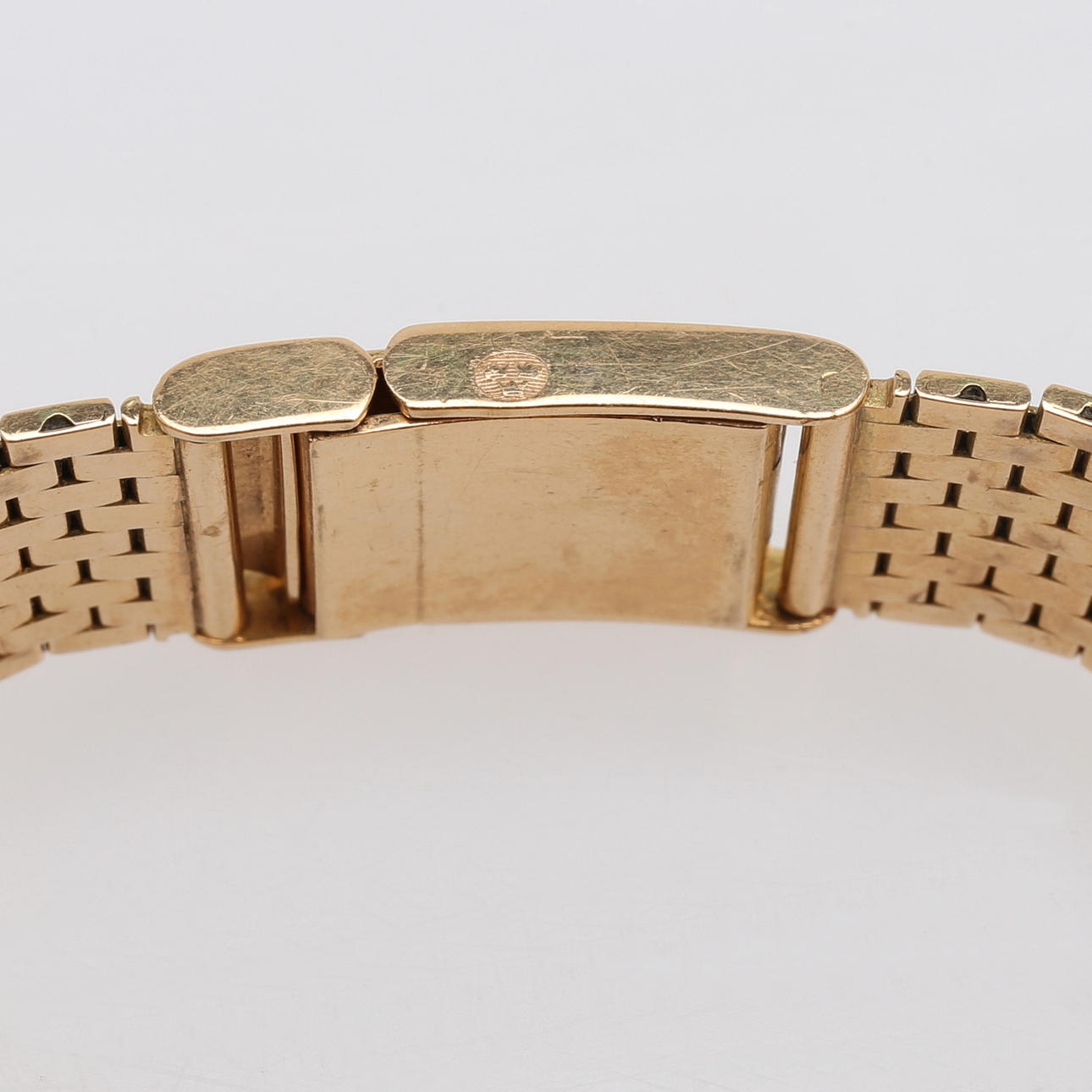 with work no. 3592818, case no. 765262, caliber 170, mid-20th century, 38x27 mm, 18k gold bracelet, length 18 cm, total weight 61 grams.