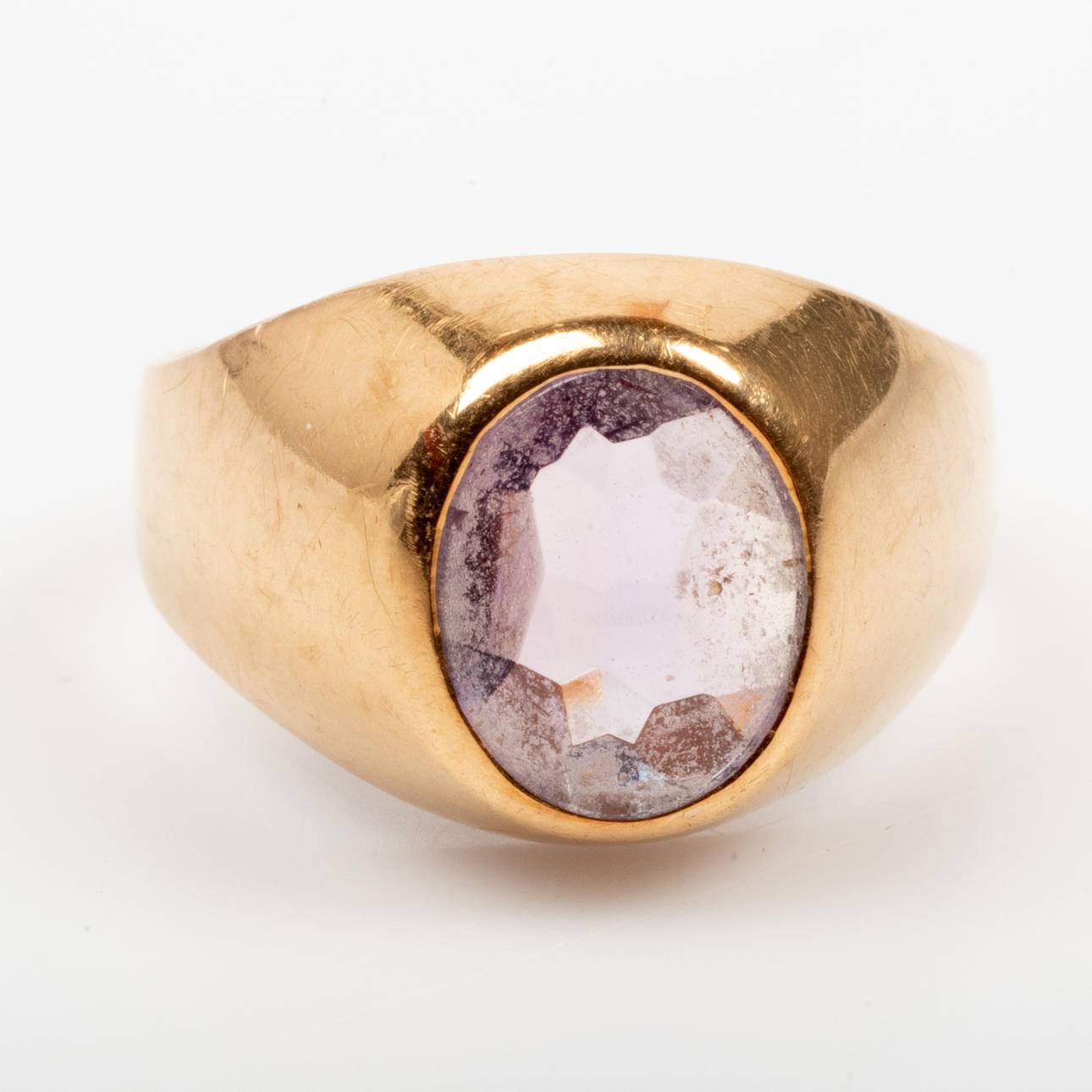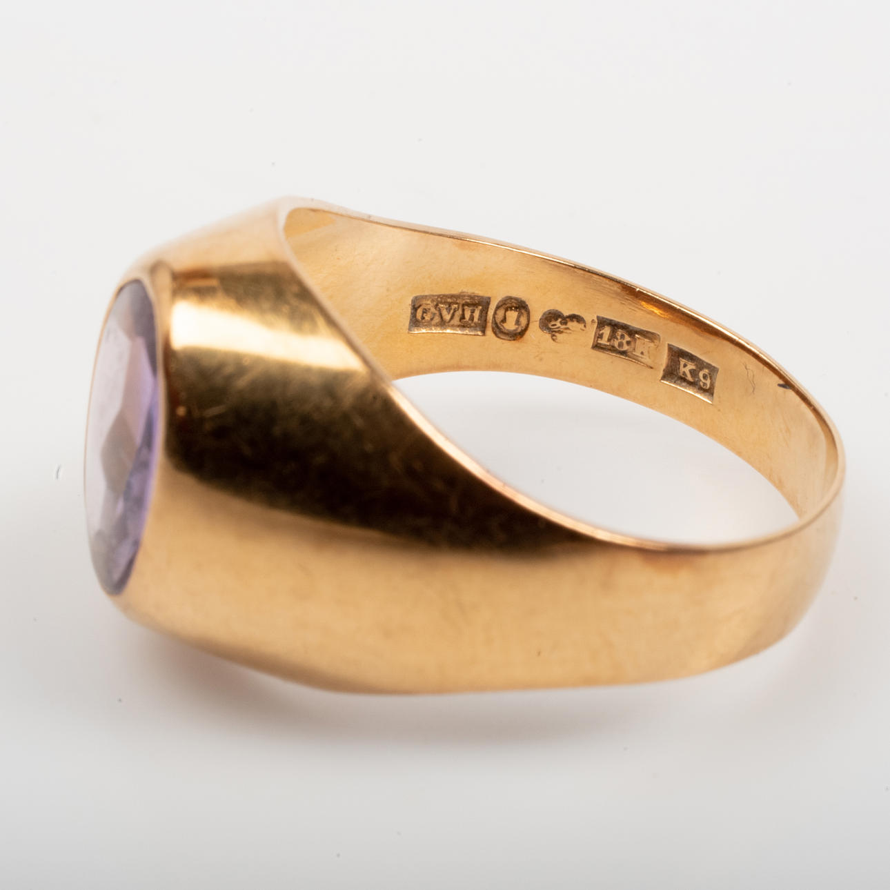 RING, 18K gukd with faceted purple stone.