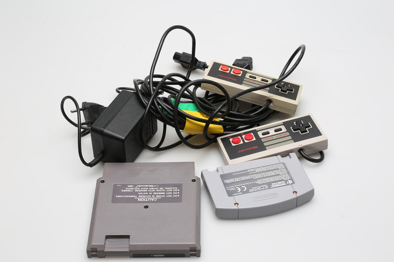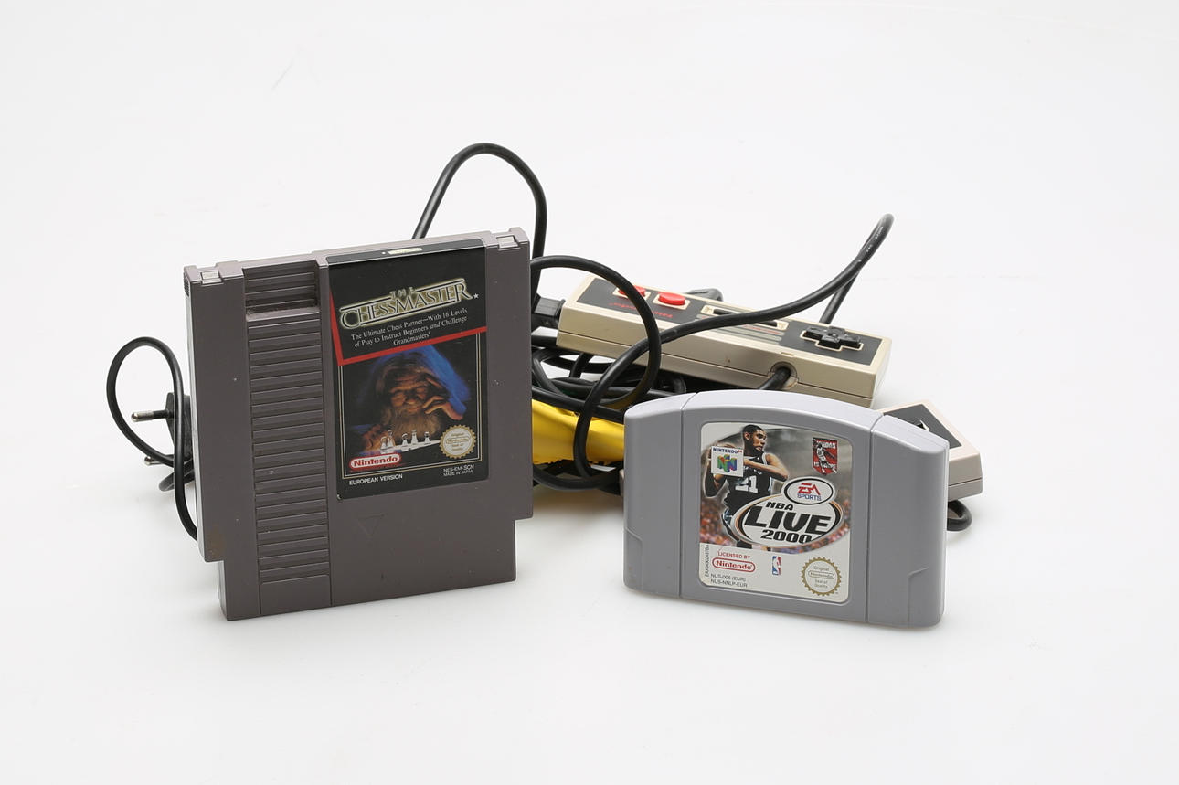 Cabling, four controllers, Game Chessmaster and a game for Nintendo 64, NBA Live 2000.