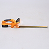 Trimmer was working at the time of cataloging. No function guarantee is provided. Hedge trimmer function unknown, charger missing. Trimmer with broken plastic at handle.