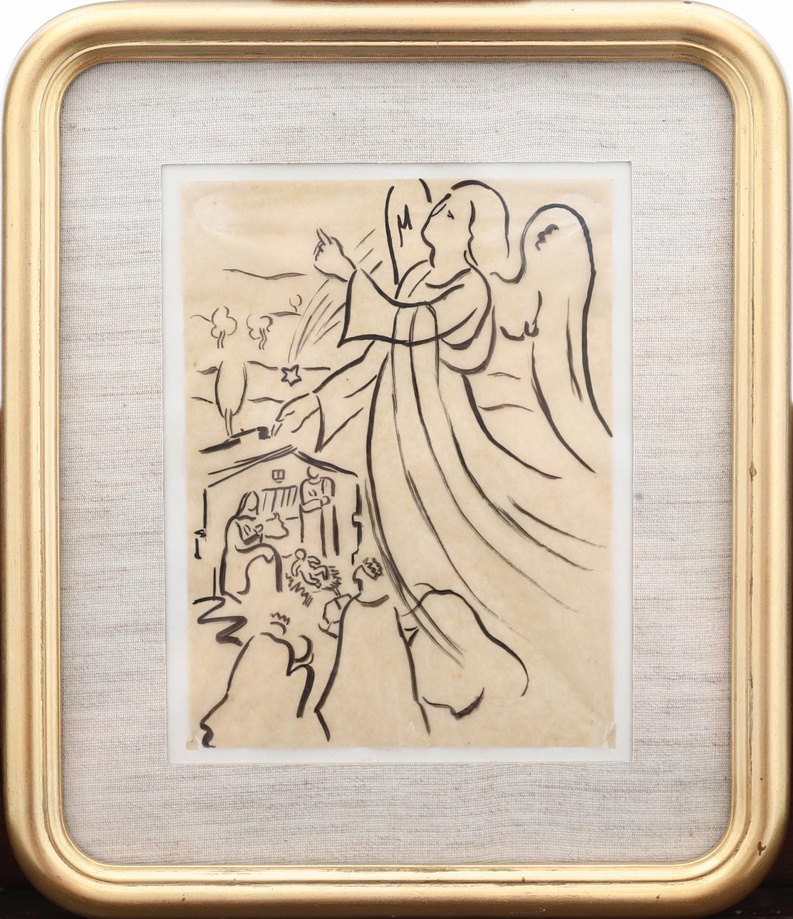 In good condition. Gilt wood frame. It has not been examined outside the frame.