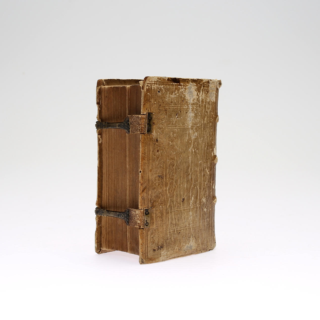 Parchment binding with printed relief decoration. Metal fittings. Greek. Dated 1550. Height about 17 cm.