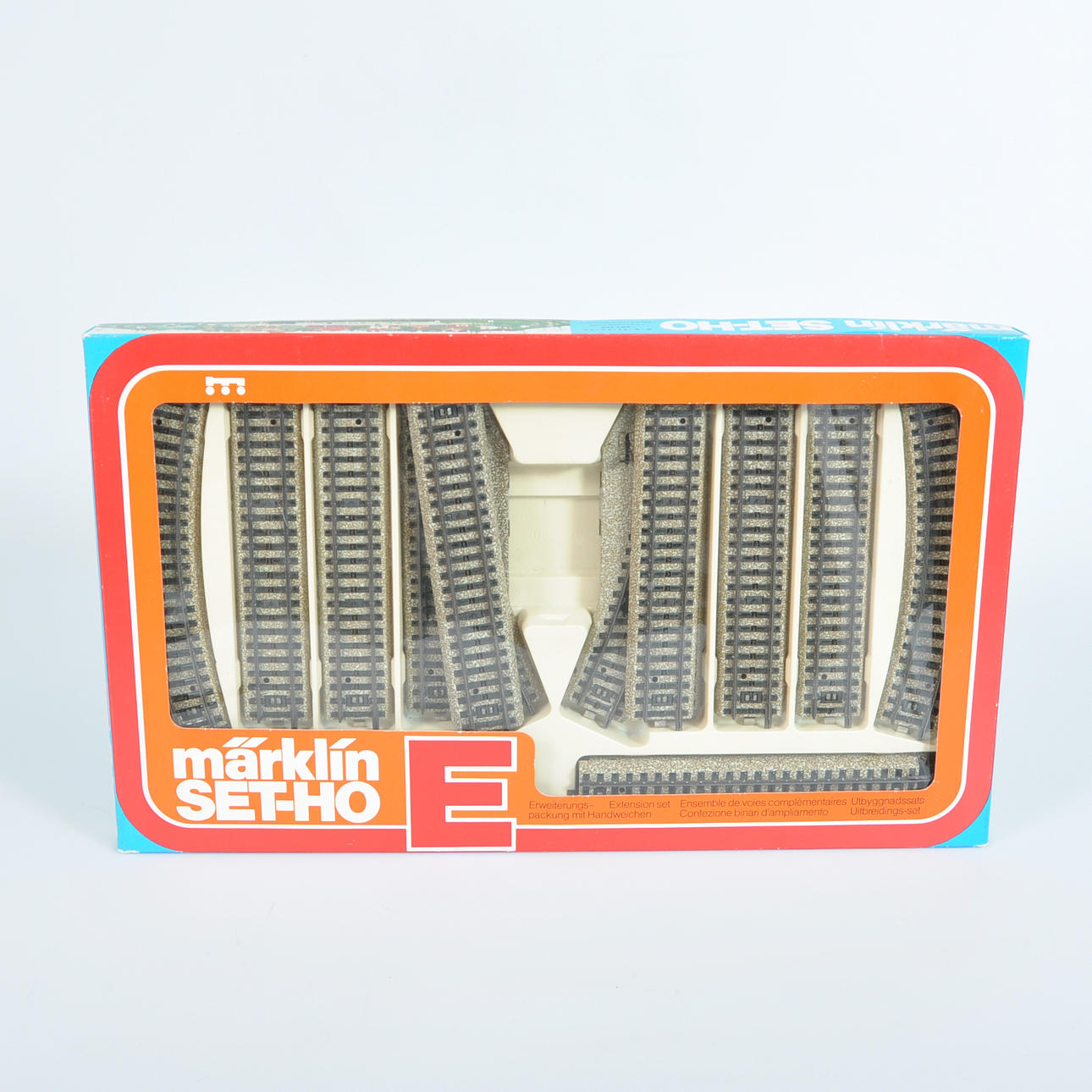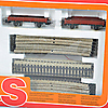 1st basic set S 0974 containing: 1st locomotive 3079 1st tipping wagon 4513 1st flatbed wagon 4503 1st transformer 10 VA 1st connecting rail 5111 1st straight rail 5106 12st curved rails 5100 e5190 1 pair 5221 gears, 10st 5106 special straight M-rails, 2st M-0 52.