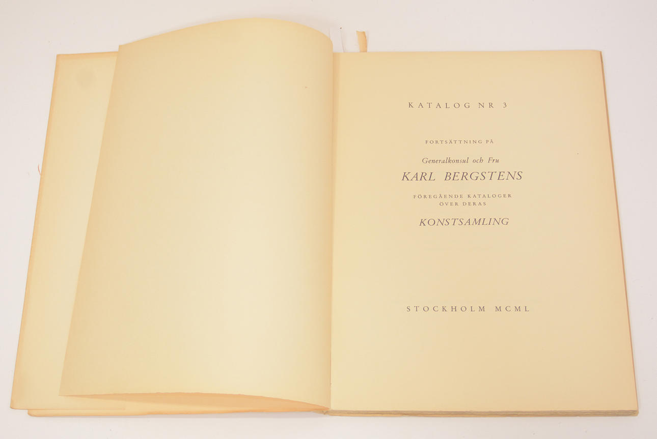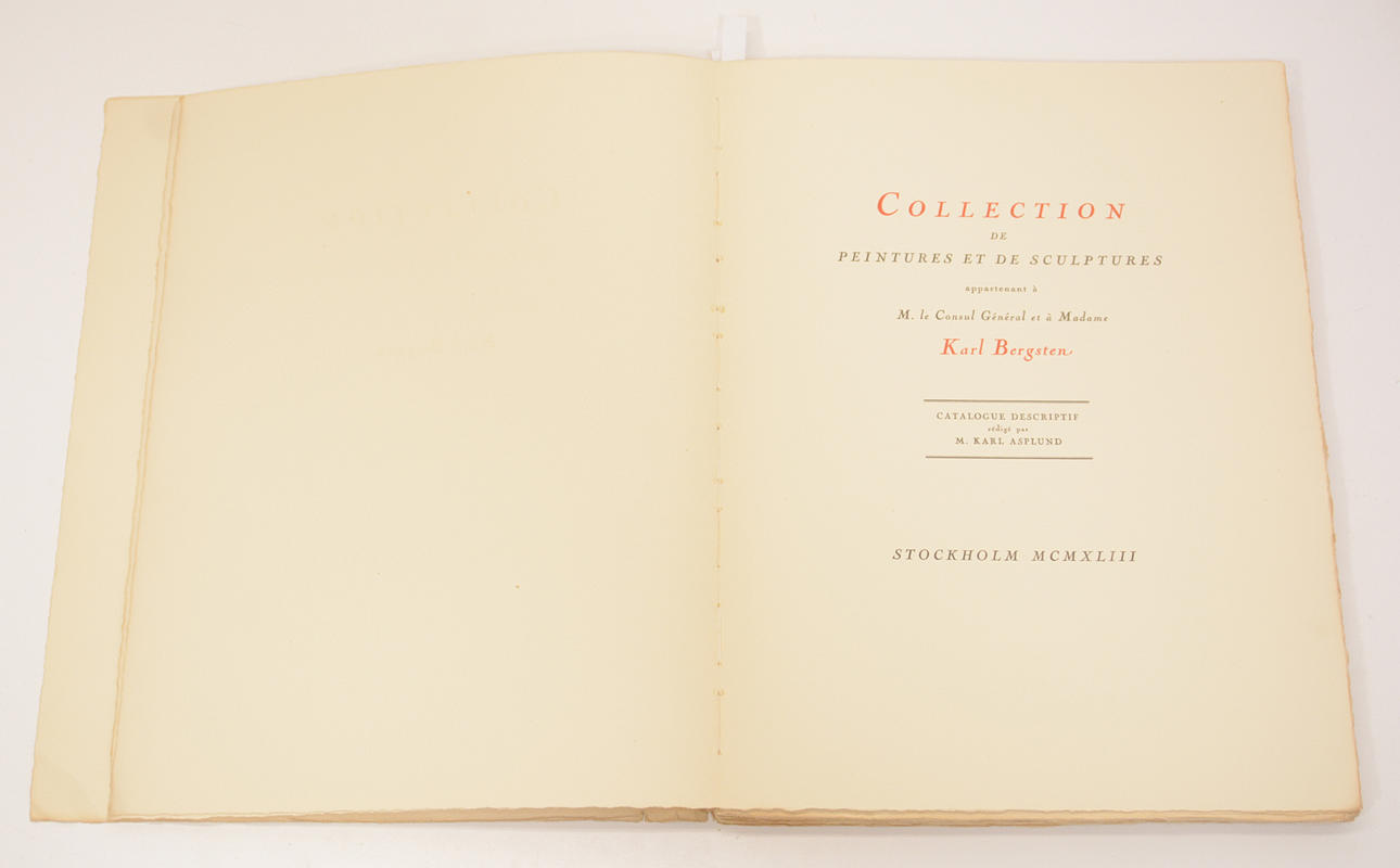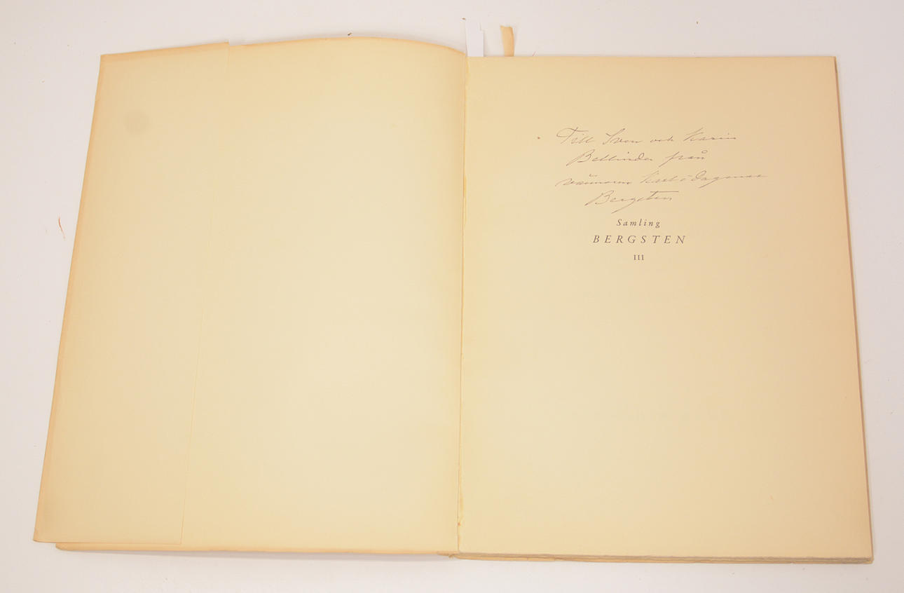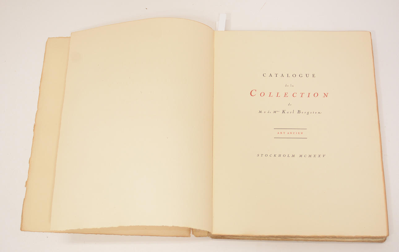 Collection Bergsten I Catalog de la Collection de M. & Mme Karl Bergsten : art ancien / couple Karl Madsen and Karl Asplund. No. 50/80 ex. 1925 + Collection Bergsten II Collection of paintings and sculptures belonging to M. le Consul général et à Madame Karl Bergsten / descriptive catalog edited by Karl Asplund. No. 6/55 ex. dedicated. 1943 + Collection Bergsten. 3, Continuation of Consul General and Mrs. Karl Bergsten's previous catalogs of their art collection: Furniture, mirrors, carpets, etc. / Ed. by Karl Asplund. No. 23/50 ex. dedicated. 1950 3 original booklets. folio format. richly illustrated.