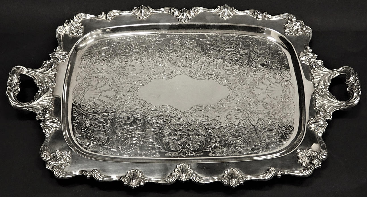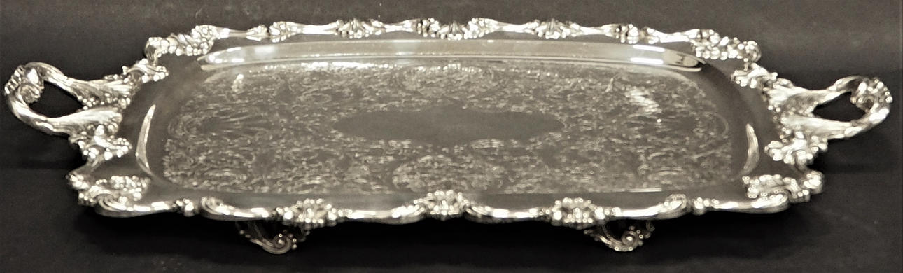 Serving tray on feet. Stamped. Length 54 cm, width 33.5 cm.