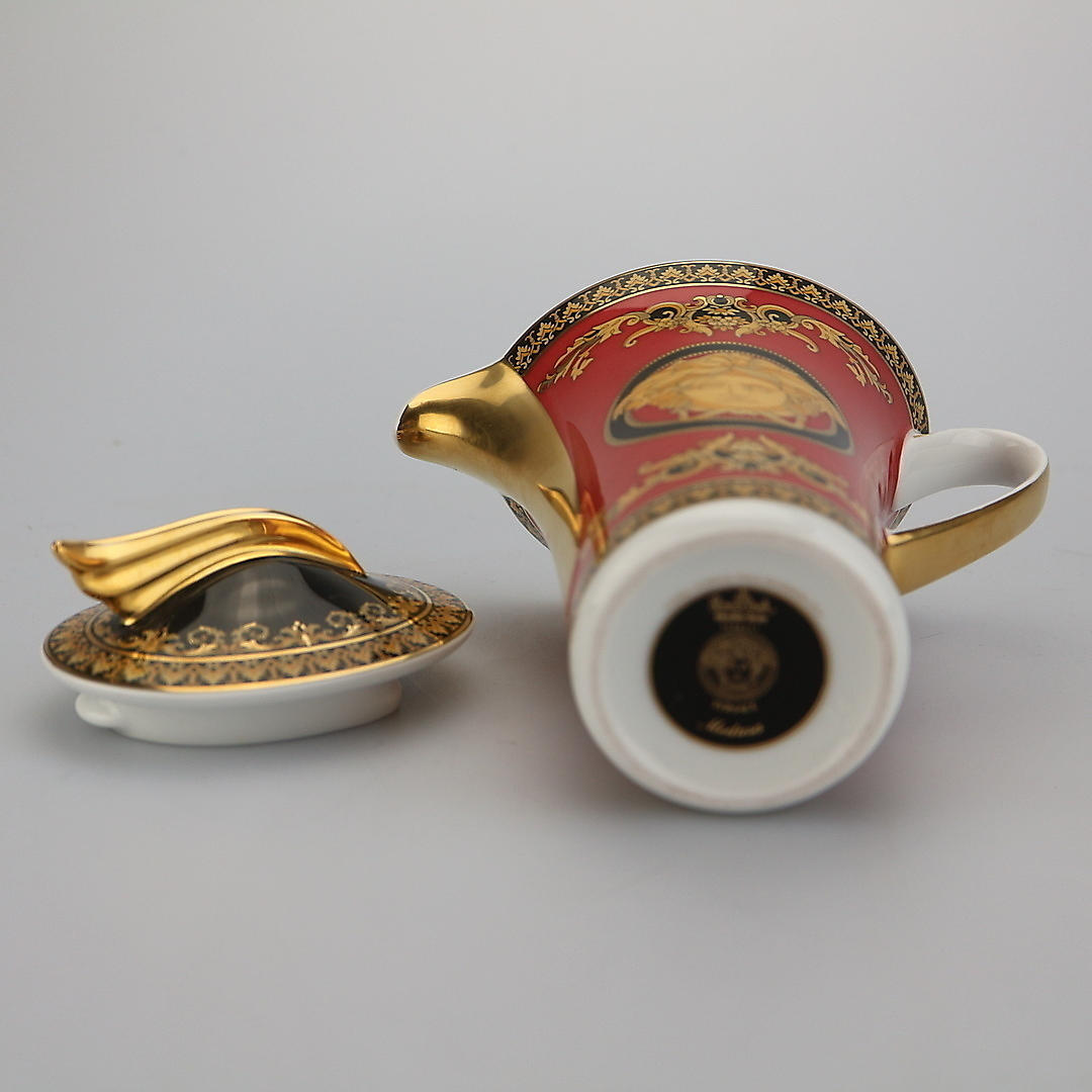 Elegant red, precious gold and black come together to form a sophisticated pattern that takes you back to fascinating and opulent epochs. The head of Medusa as a symbol of the Versace collection makes this service a classic. The world of Versace brings lavish accents to the modern age. A milk jug from the Versace Medusa Ikarus line. Content: 0.22 l.