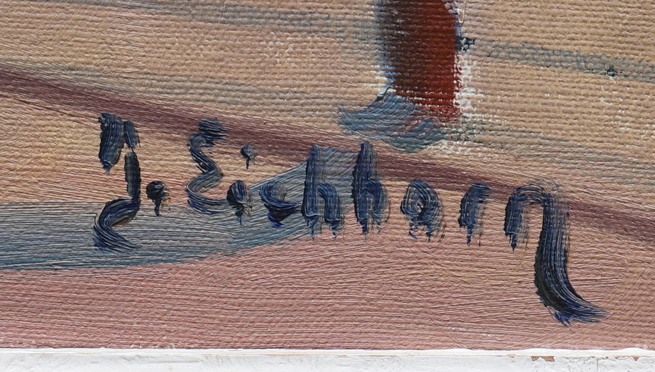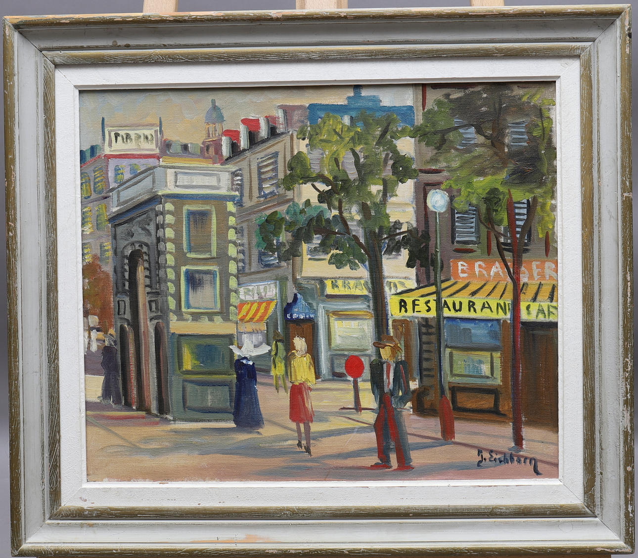 1225950. JACK EICHBORN. oil on canvas, city life, signed.