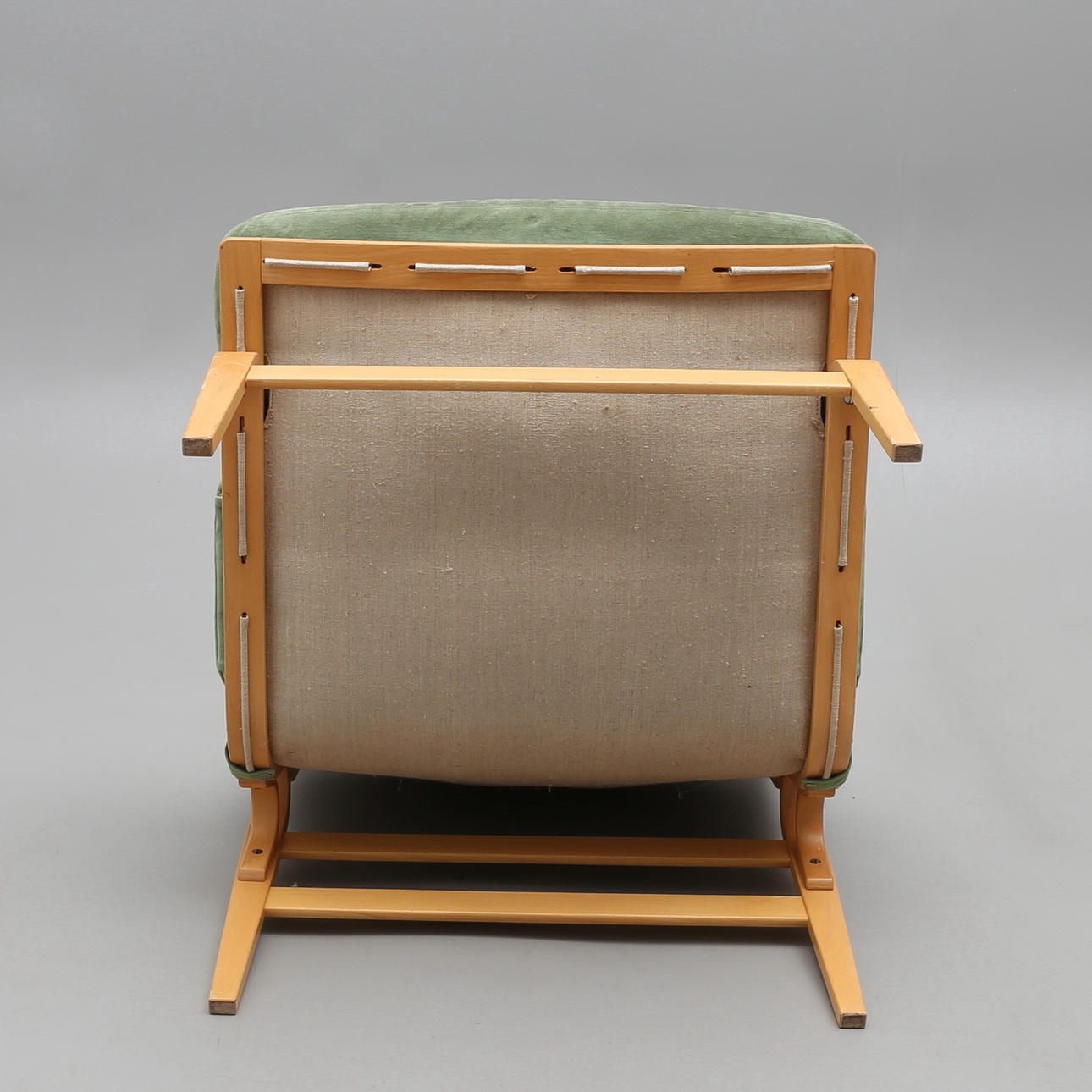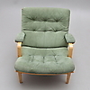 "Bruno Mathsson by Dux", loose plumes and armbands covered with green fabric.