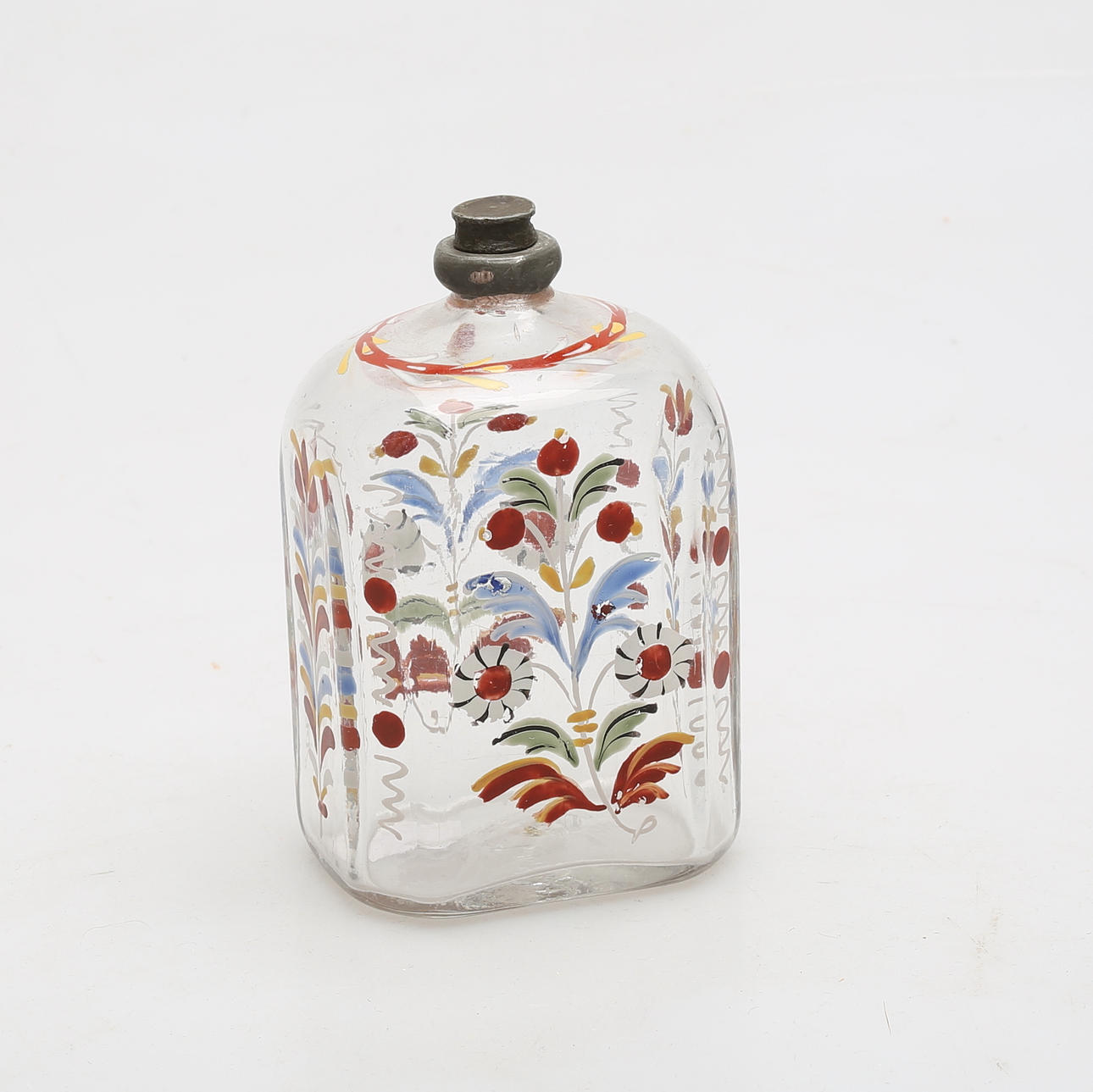 Painted. Tin fittings. Height approx. 11 cm.