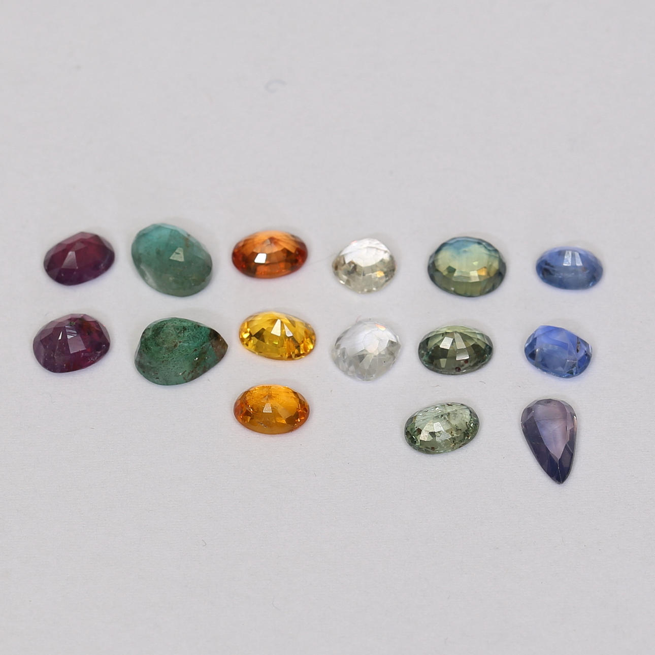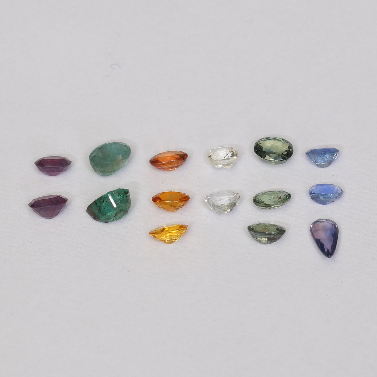1248885. RUBIES, SAPPHIRES, EMERALDS, about 18.7ct.