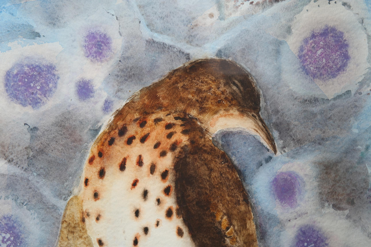 1249383. INGER LARSSON. Watercolor, "Dead Thrush", signed, Lomma.