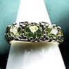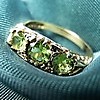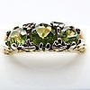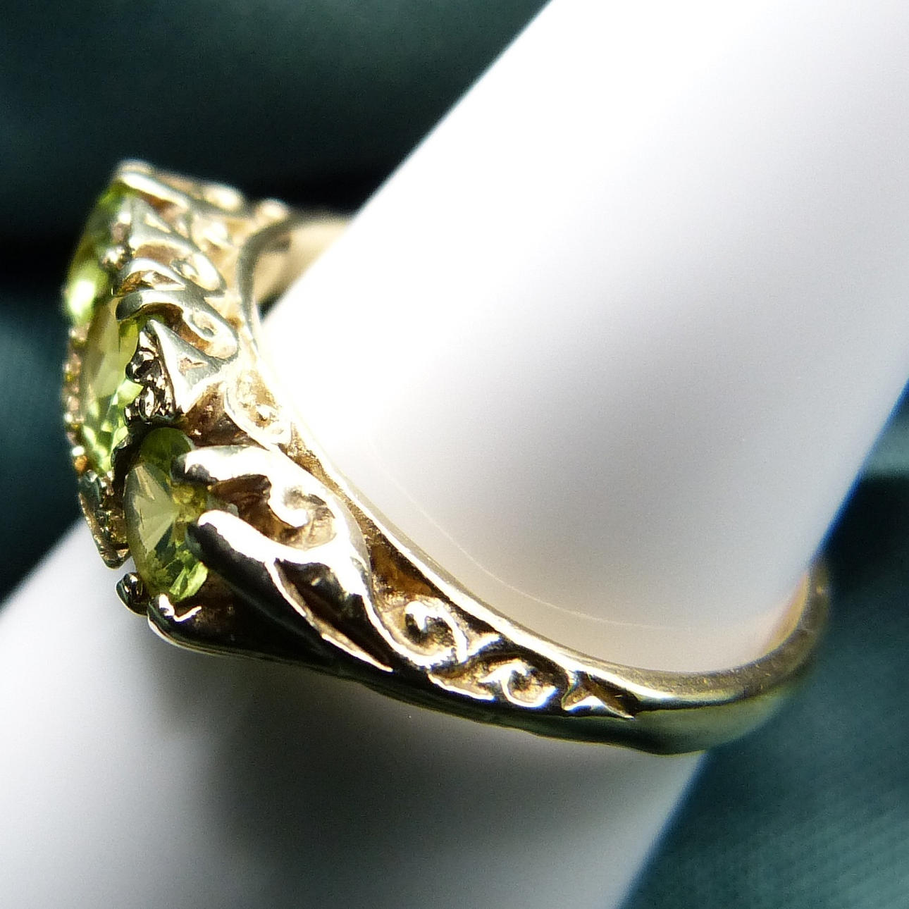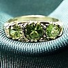A Victorian-style, 9k yellow gold, 3-stone peridot ring.