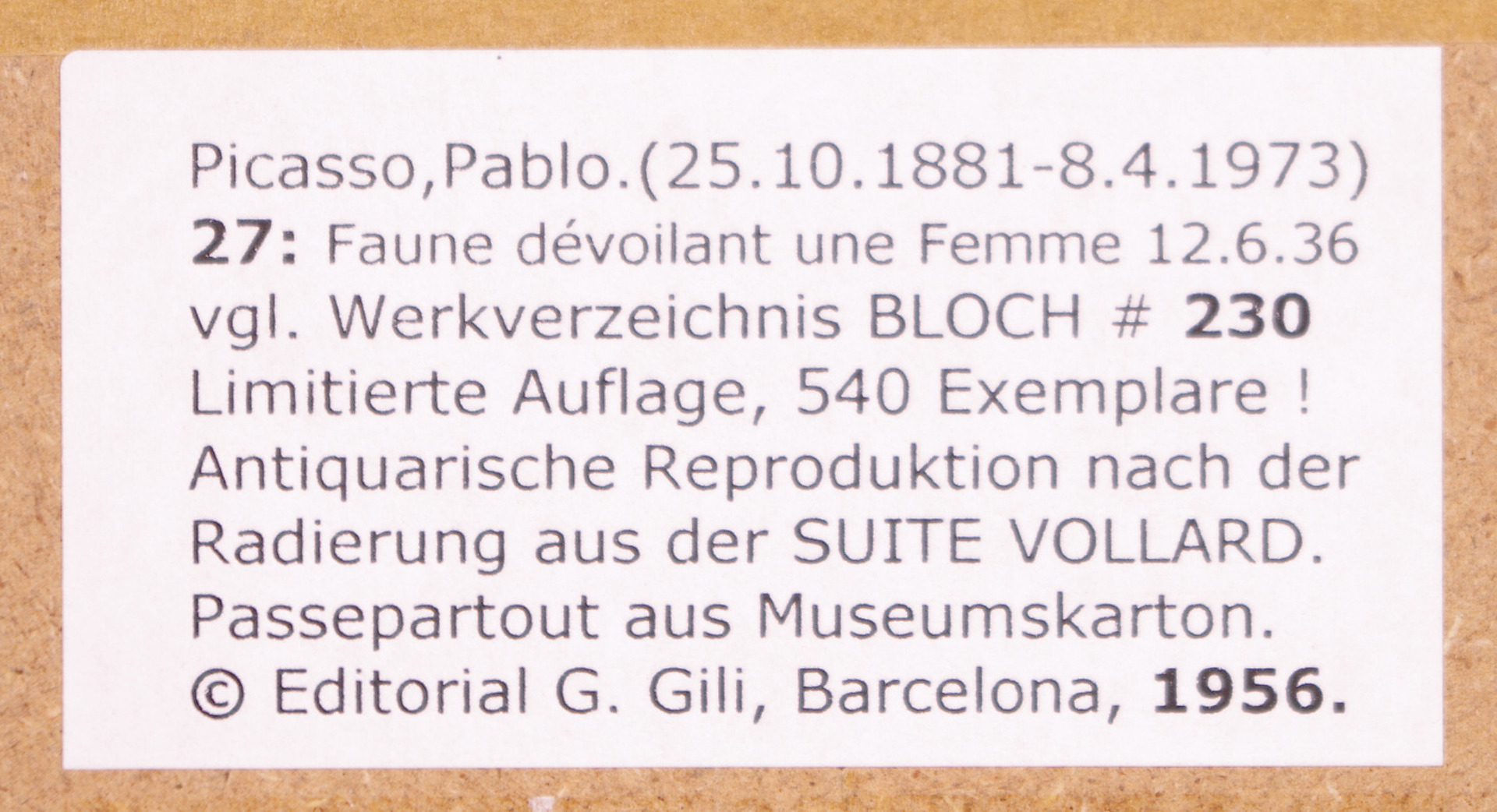 125519. PABLO PICASSO. After. Vollard Suite 1956, antiquarian print.