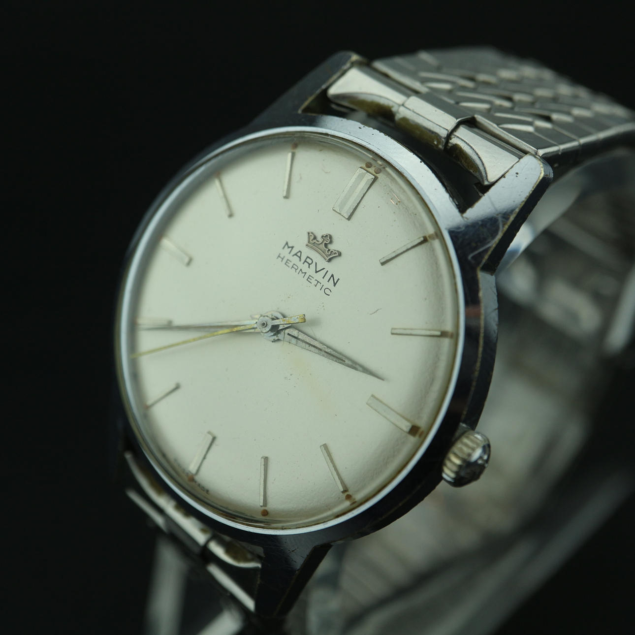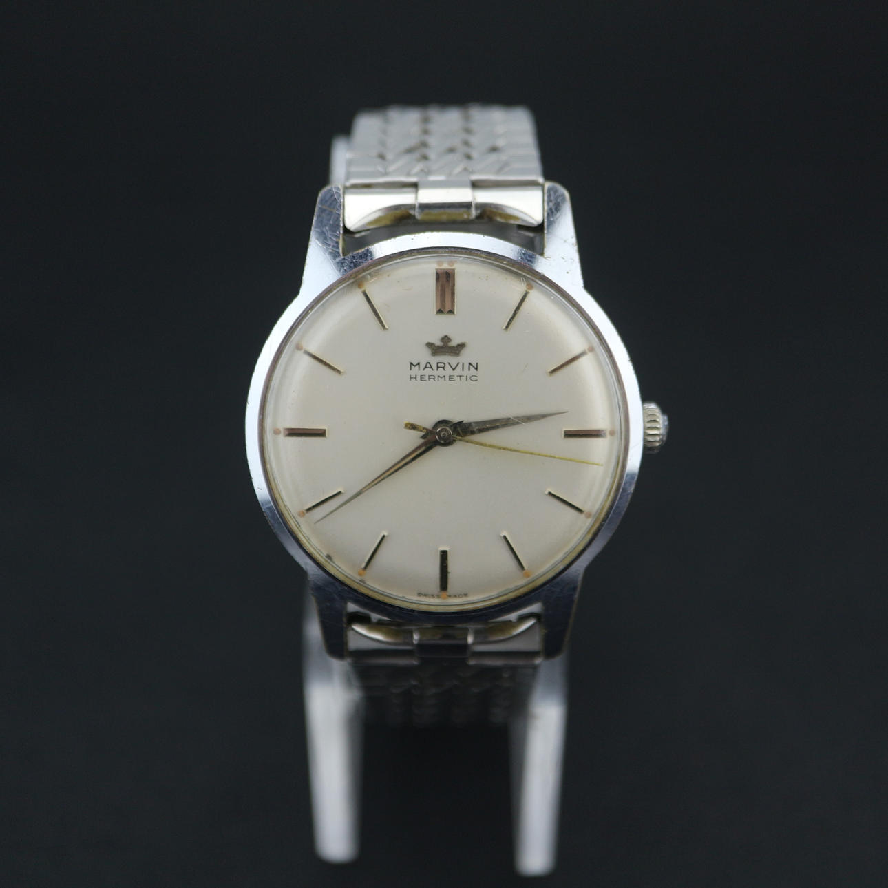 Marvin Hermetic WRISTWATCH, with flexible link bracelet, case diameter: 33 mm.