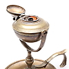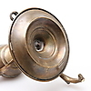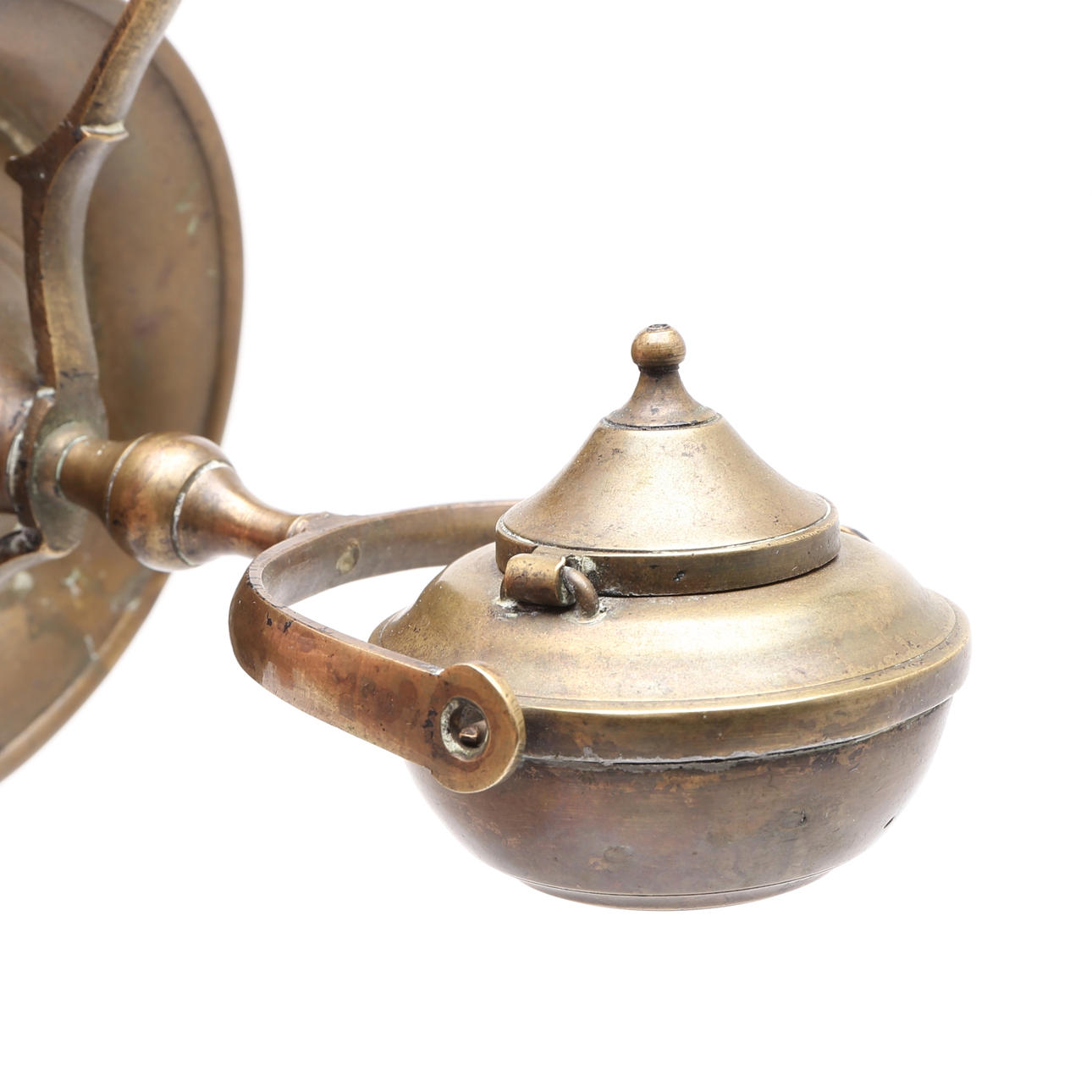 Wall-hung kerosene lamp in brass, also works as a table lamp.
